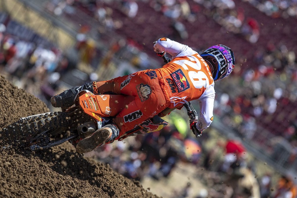 Bonacorsi also showed potential, but a costly mistake in the second half of the race left him on the edge of the points. Fortunately, the young Italian never gave up and salvaged 15th on the final lap. He was classified 10th overall, which bumped him up to third in the EMX250 Championship Standings.
