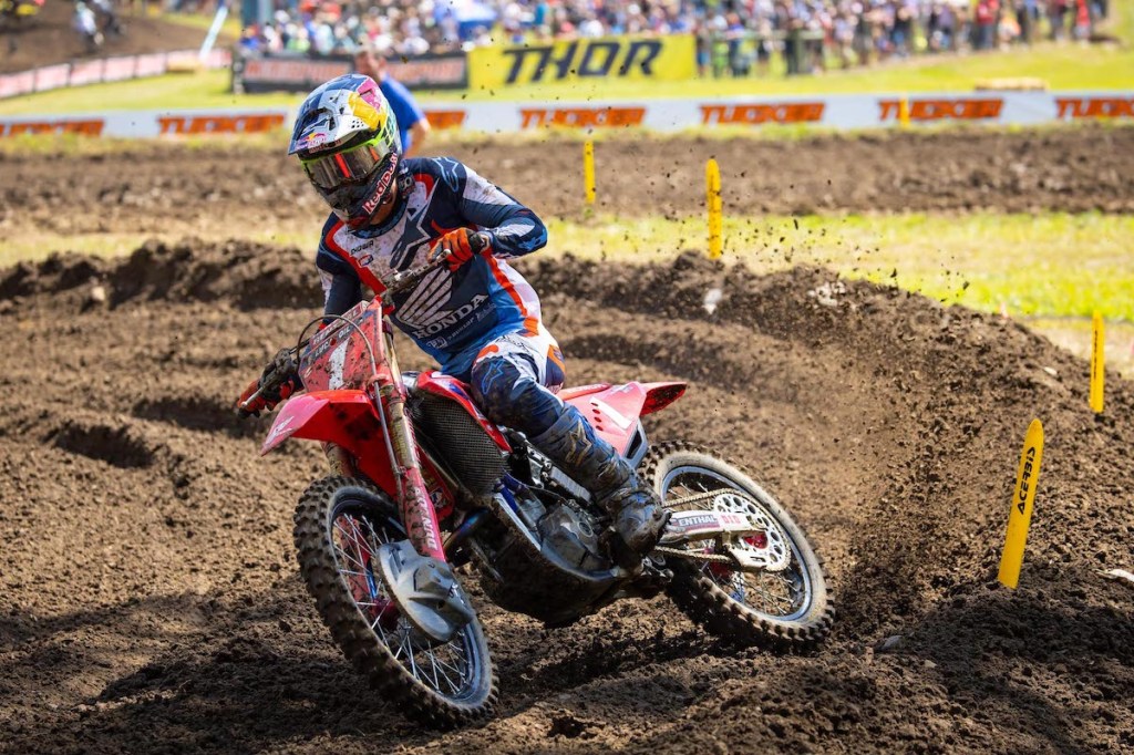 Lawrence made quick work of the gap to Thrasher and wasted no time in making a pass for the lead as soon as he saw an opening. Once out front, the Honda rider quickly distanced himself from the field. As Lawrence pulled away the focus turned to the battle inside the top three as Hampshire closed in on Thrasher and successfully made the pass for second. The closing minutes of the moto saw a hard charge from Team Honda HRC’s Hunter Lawrence that allowed the Australian to close in on Thrasher and grab third.