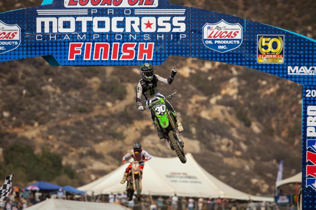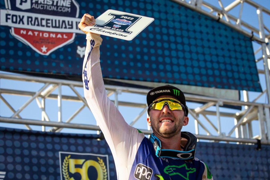 PALA, Calif. (September 3, 2022) – After 12 rounds of travel across the country and 24 hotly contested motos over the course of the summer, the 50th Anniversary of the Lucas Oil Pro Motocross Championship, sanctioned by AMA Pro Racing, came to a dramatic conclusion from the proverbial home of the industry in Southern California. Champions were crowned at the PristineAuction.com Fox Raceway II National, presented by Fox Racing, where the historic showdown between Monster Energy Star Yamaha Racing’s Eli Tomac and Team Honda HRC’s Chase Sexton culminated with another memorable battle, from which Tomac prevailed following a 1-1 effort, to hoist the Edison Dye Cup for the first time since 2019 and secure the fourth 450 Class title of his decorated career. In the 250 Class, Team Honda HRC’s Jett Lawrence captured an exclamation point victory to successfully defend his hold of the Gary Jones Cup and secure back-to-back championships to further solidify his role as the sport’s youngest star.