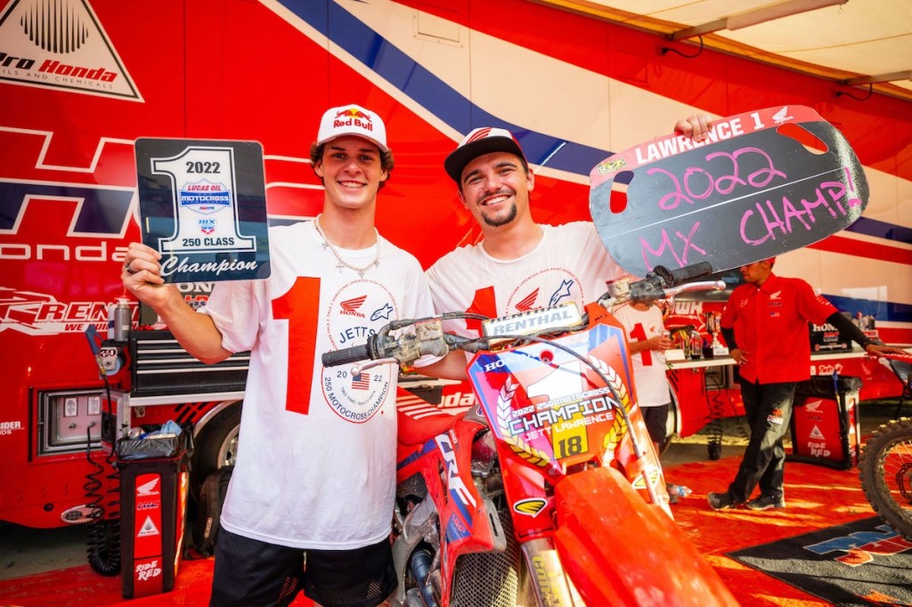Lawrence’s final championship margin was 45 points over Shimoda, while Hunter Lawrence completed the championship podium in third following a fourth-place finish (2-5) in the finale. Jett Lawrence is 12th two-time champion in the history of the division and the first to earn back-to-back titles since Jeremy Martin in 2014-2015.