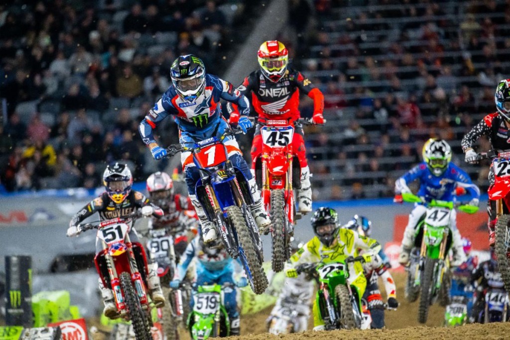 The series travels back up the California coast to Angel Stadium of Anaheim for a race that pays points to both the Monster Energy Supercross season and the SuperMotocross World Championship series. Monster Energy AMA Supercross Round 2 was postponed due to area flooding and has found its new place on the schedule; the racers will battle at RingCentral Coliseum in Oakland, California on February 18th. The Oakland Supercross will go into the record books as Round 2 of the 2023 season but will sit just after Round 6 on the calendar.