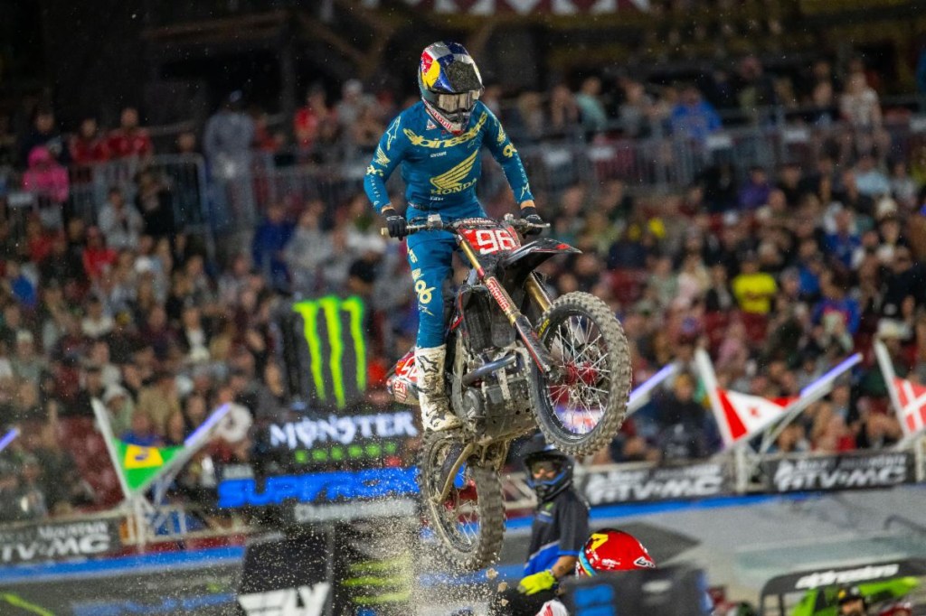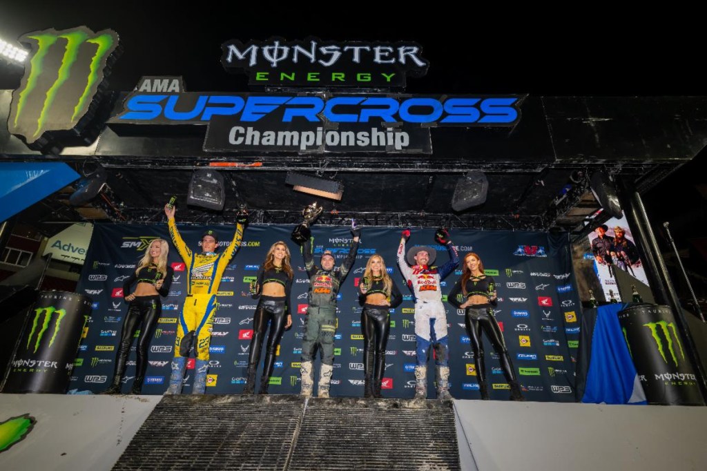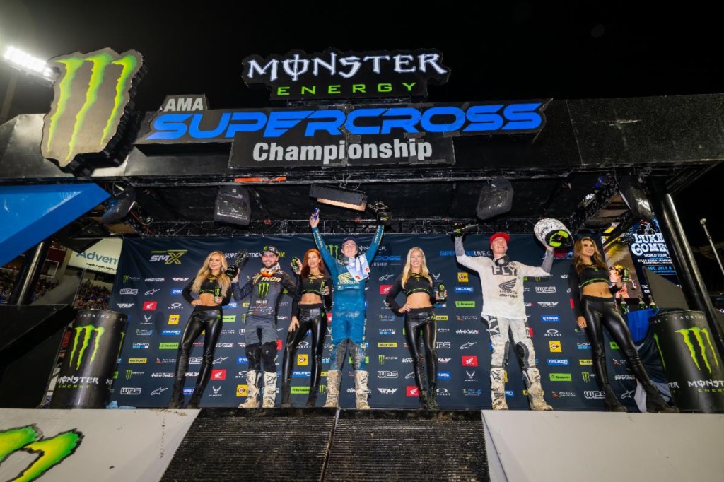 Nabbing third place was Webb’s teammate Red Bull KTM’s Aaron Plessinger, earning his first podium finish of 2023. The round paid points not only in the 17-round supercross series but also in the all-new, 31-round SuperMotocross World Championship. In a nail-biter of a 250SX Class race, Team Honda HRC’s Hunter Lawrence took the race down to two dramatic contact passes in the final two corners to win his second consecutive race in as many rounds of the Eastern Regional 250SX Class series.