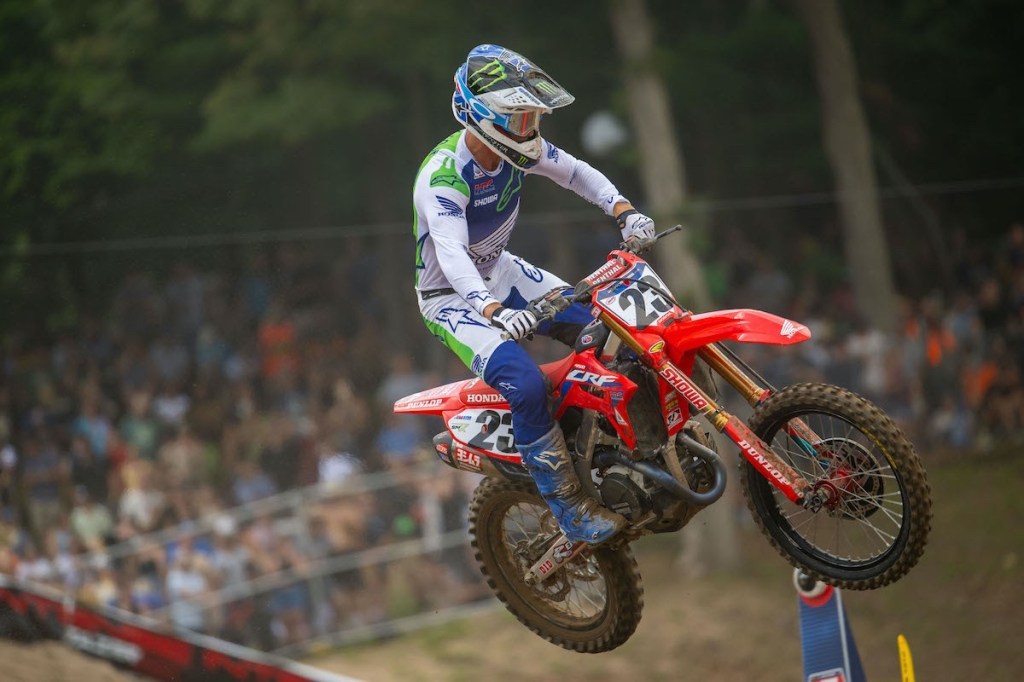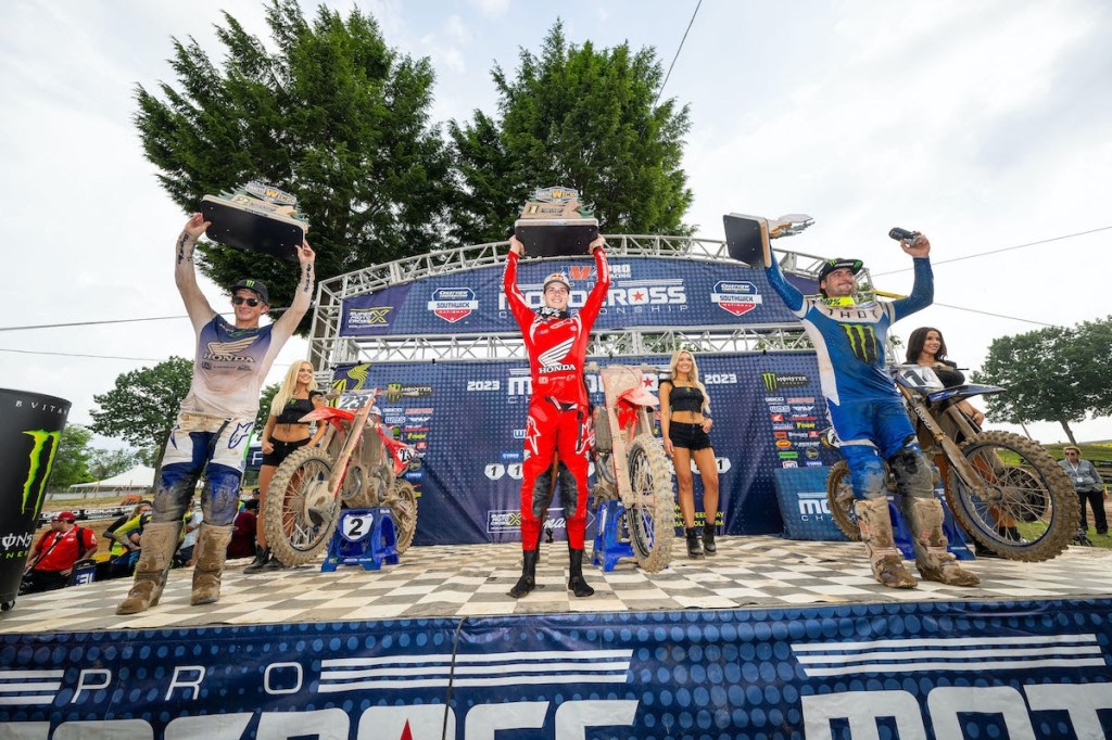 SOUTHWICK, Mass. (July 8, 2023) – The 2023 Pro Motocross Championship, sanctioned by AMA Pro Racing, reached its halfway point on Saturday with its annual foray to the motocross hotbed of New England. The 42nd running of the Crestview Construction Southwick National presented the most challenging test of the season thus far, where high temperatures and humidity combined with the demanding sand track of legendary The Wick 338 resulted in a grueling afternoon of racing. The perfect season by 450 Class rookie Jett Lawrence continued with another dominant outing by the Team Honda HRC rider, who went 1-1 yet again for his sixth straight victory, while two-time MX2 World Champion Tom Vialle emerged with his first win in U.S. competition in the 250 Class.