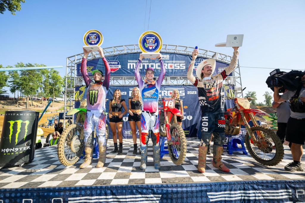 “I knew [Barcia] was going to be hard to pass and this track is a bit one lined. He’s such a great competitor and I really enjoyed racing with him in that second moto. I rode a bit tight in that first moto, but we came out and proved it in the second one. I’m just so grateful to be up here again [on the podium].”