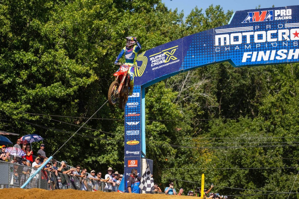 “I had a spot where I could see Chase [Sexton] each lap, but then [one lap] I just didn’t see him there. Then I knew he was closing in. I had a bit of bad luck with lappers, but we got away with it. It was a close one there, but that was good at the end.”