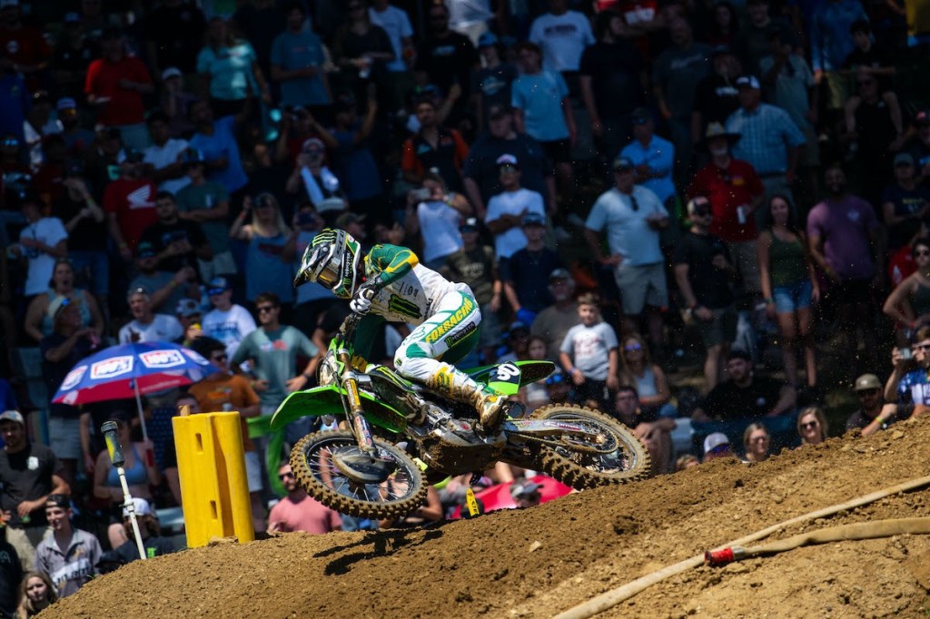 Less than a second separated Plessinger and Lawrence, but the Australian quickly closed onto the rear fender of the KTM and relied on some savvy racecraft to slip into the lead and seize control of the moto with 13 minutes remaining. From there he quickly moved out to a multi-second advantage. As Lawrence pulled away, the battle for the remaining podium spots tightened up between Plessinger, Cianciarulo, Barcia, and Monster Energy Kawasaki’s Jason Anderson.