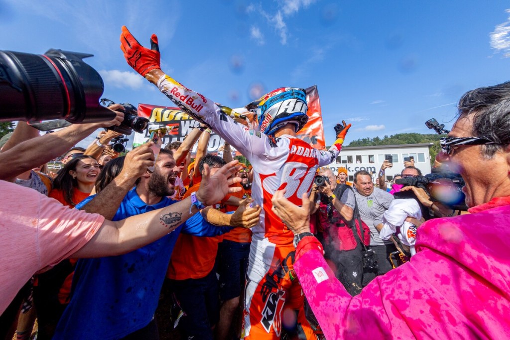 Andrea Adamo finished 3rd overall at Maggiora Park for the Grand Prix of Italy, the penultimate round of the calendar, and clinched the 2023 FIM MX2 Motocross World Championship. The Italian capped a consistent first season as a Red Bull KTM Factory Racing rider by bringing the team a fifteenth title in 20 years and is the tenth different racer to earn the gold plate with the KTM 250 SX-F.