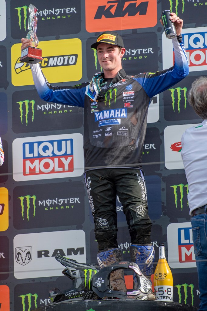 Andrea Adamo, 3rd and 3rd for 3rd overall in MX2: “I cannot believe it. This really is like a dream. Thank you to everyone. I came to Maggiora not thinking about the GP win and mainly about the first chance to take the title. I’m really happy with my motos. They were very consistent even though I didn’t have the best starts. It wasn’t easy but I wasn’t thinking about the bigger picture too much and just wanted to enjoy the races. I saw Liam when I came through to start the last lap and that wasn’t so nice but this is part of the sport. I hope he is fine. An unbelievable day for me. Maybe I got lucky at times this season but every single race I tried to do the maximum I could: sometimes it is P2, sometimes P5 and sometimes P1. Nothing more. I can accept when someone is faster than me and I held this strategy all season; now I’m world champion!”