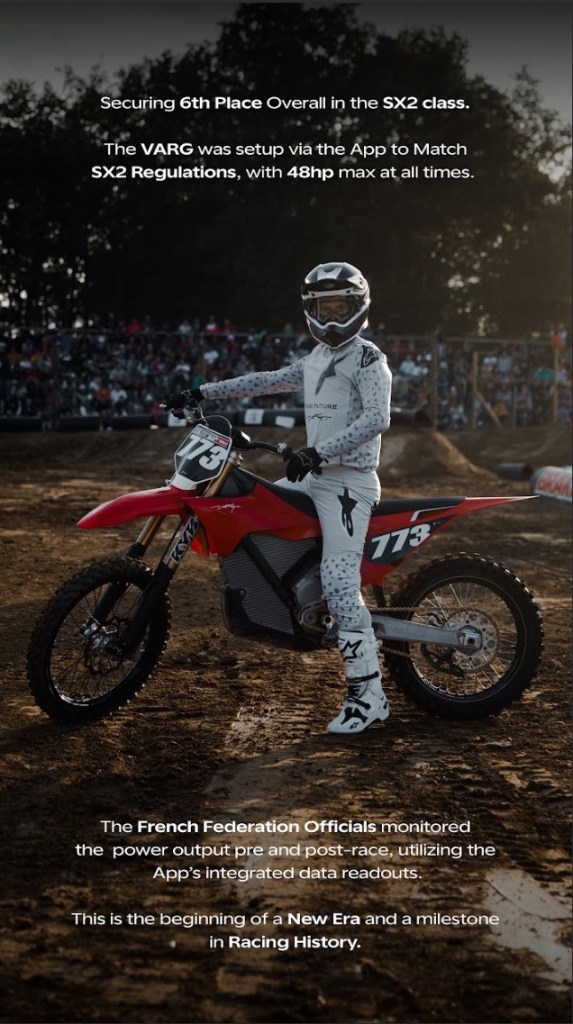 It was a first for the VARG in the SX2 category!” Thomas grinned afterward. “Despite the limited training time on the bike, my feeling with the VARG was incredible from the first laps on the track. During the timed practice sessions, I ranked 3rd in my group. To finish the evening, I secured 6th place in the final race. I can’t wait to ride the bike again this week so that we can aim for a podium next Saturday for Brienon.¨