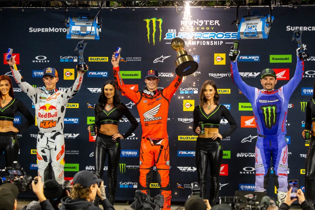 « I come out here to win and be up front, so not only Jett, but everybody else, I gotta go out there and race as hard as I can and try and win. But I’m happy to be on the podium. It wasn’t, like I said, my best riding, but it’s a long season; and like last year shows, you gotta be there for every race. I feel like my consistency is better this year, I just gotta get a little bit more speed. I had really good speed last year and now we gotta get that back and we’ll be in a good spot. » – Chase Sexton when asked about the importance of preventing Jett from getting momentum early in the season.
