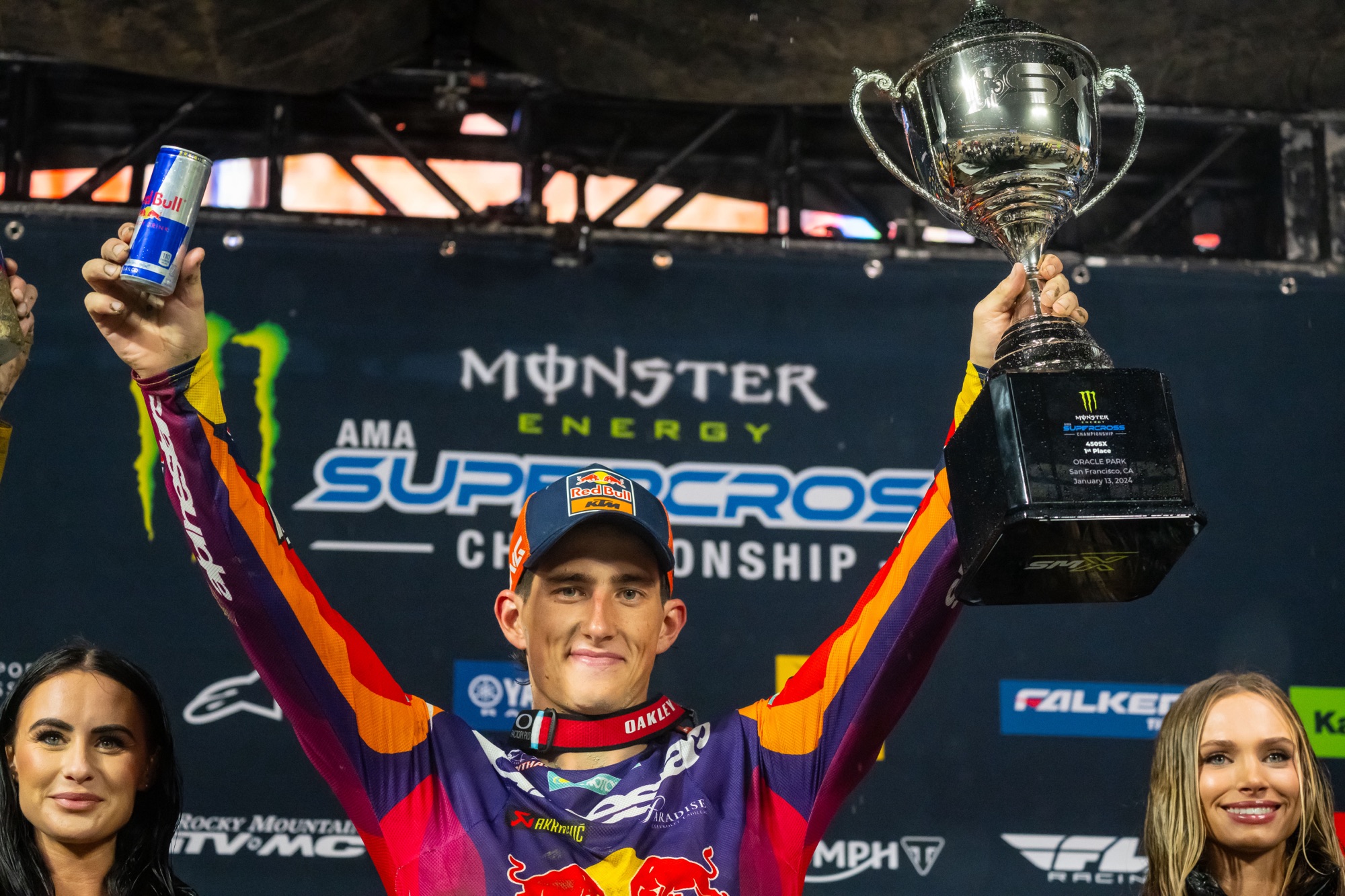 San Francisco, Calif., (January 14, 2024) At Round 2 of the 17-round series, Red Bull KTM’s Chase Sexton put in a near flawless ride under some of the most brutal race conditions ever seen at a Monster Energy AMA Supercross race. The win moves Sexton into the points lead.