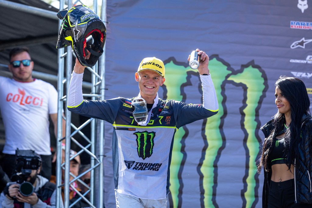 deuxième place dans la deuxième course pour assurer son tout premier podium général. C’est le premier podium Triumph au classement général du Championnat du Monde MX2.