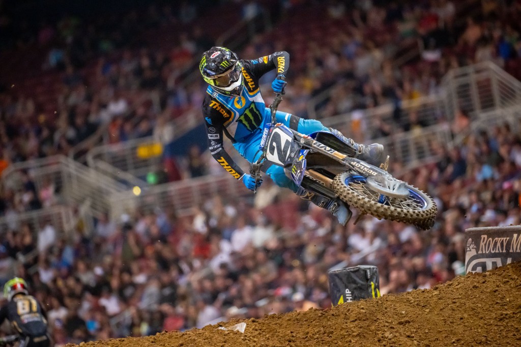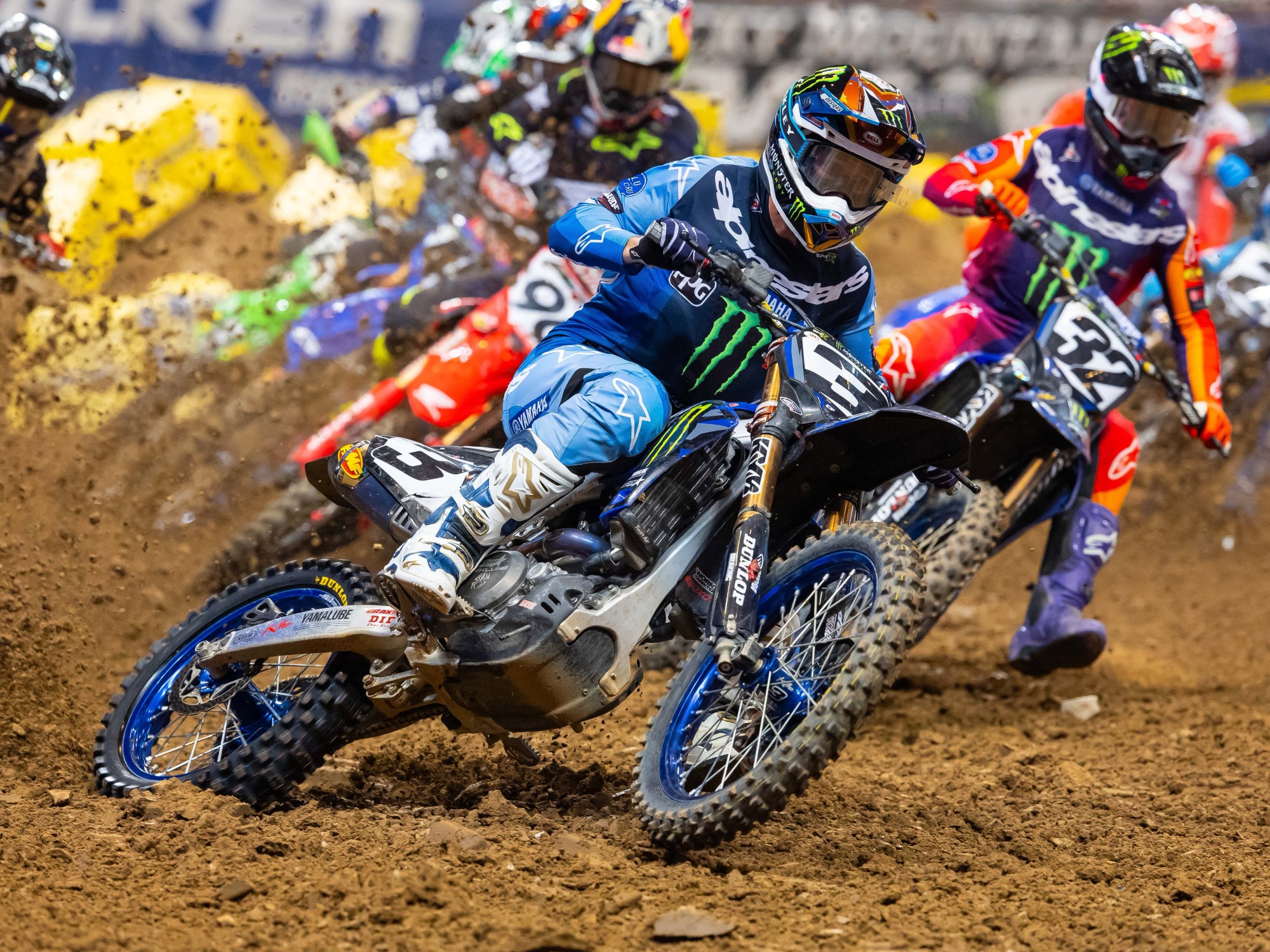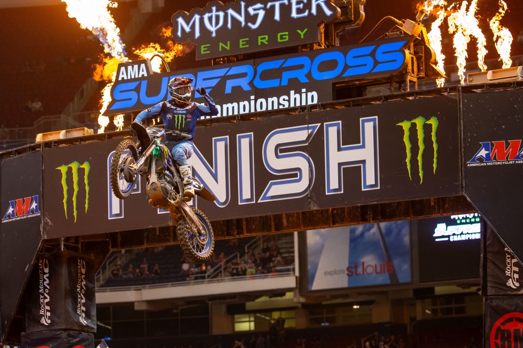 St. Louis Mo., (March 31, 2024) Monster Energy Yamaha Star Racing’s Eli Tomac took his first win of the season, and his first since returning from his 2023 Achilles injury, with 1-1-1 Race scores at the St. Louis Triple Crown Supercross. With the win at Round 12, Tomac became the sixth different rider to win in this highly competitive season.