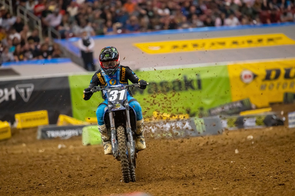Monster Energy Yamaha Star Racing’s Cooper Webb earned second overall with (5-6-2) Race finishes inside The Dome at America’s Center. With the finish Webb captured the championship-within-a-championship 3-Round Triple Crown title. In the race format that combines the finishes from three separate Races, Team Honda HRC’s Hunter Lawrence earned his career-first 450SX Class podium with (8-2-4) Race finishes. The unpredictability of the Triple Crown format showed a few new wrinkles in St. Louis with five riders getting docked positions in Race 2 due to red cross flag infractions. Also, big crash in Race 3, when Team Honda HRC’s Jett Lawrence was t-boned, caused a big change in the point standings. Cooper Webb now trails Jett Lawrence now by only eight points. In the Western Regional 250SX Class, Monster Energy Pro Circuit Kawasaki’s Levi Kitchen was nearly picture-perfect throughout the night; he took the overall win with 1-1-1 Race wins.