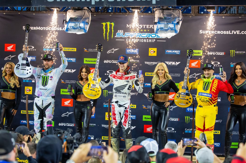 “I got off to a third-place start, and the guys just rode away from me. So gotta give it: when you’re not on, you’re not on, and tonight I definitely struggled. So I’ll take it; to get on the podium is great. Those boys were riding awesome. And last year I ended my season here [with a crash], so you got a little bit of that in the back of your mind. So, it’s good to get out of here healthy, still in the points hunt, and yep, can’t get ‘em every weekend… I want to give it up to the Good Lord, [my sponsors]… all these fans were great today and yeah, we get back to work this week.” – Cooper Webb