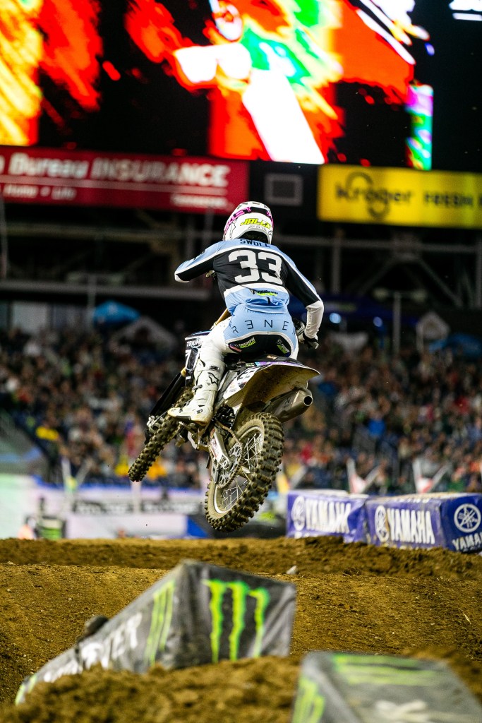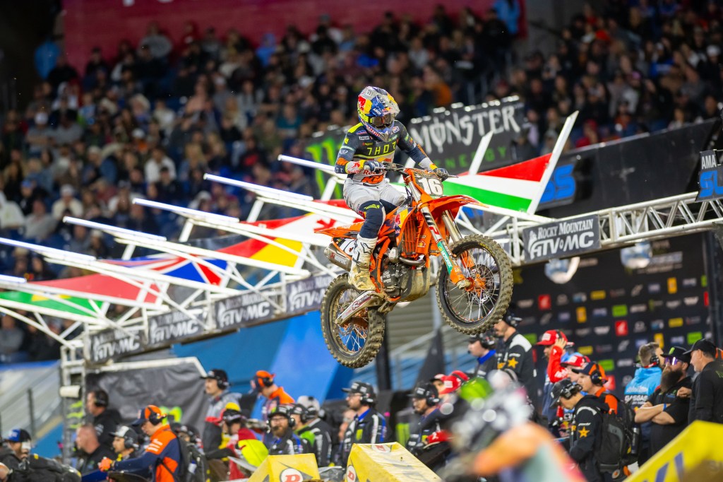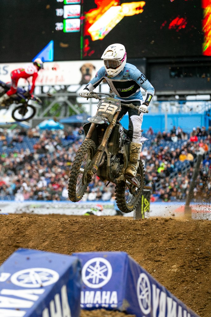 “I was feeling it in the beginning, I’ll tell you what. And I was just trying different lines, and I figured we would have to do something special to get out front. Unfortunately, I didn’t maintain the lead there. I tried my heart out, that’s for sure. [I] had so much fun being up front for those few laps there. I’ll try to get better and better. You know, get better in the second half of the race. And so overall, great night for us, thank you so much, Nashville.” – Eli Tomac, when asked about launching some big jumps in the Main Event.