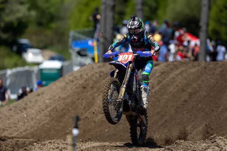 « Andrea Bonacorsi encountered a rear-wheel issue after landing heavy off one of the big jumps. This broke his wheel, and he could not finish Race One, but he handled it well. He rebounded in Race Two and demonstrated his ability to challenge the top-10 riders. Considering his recent transition to the MXGP class with minimal preparation, his performances are noteworthy. However, starting on the YZ450FM is different from the YZ250FM, and Andrea needs to work on his technique and power management during the start. With improvement in this area, he has the potential to run the pace of the front-runners.