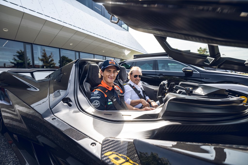 He toured the 9500m2 Motorsport building where the machinery for motocross, Enduro, Rally and MotoGP are readied for almost 70 factory racers, and all the support vehicles, material and structures are housed. Then after a blast around the block with Member of the Board Hubert Trunkenpolz in a X-BOW GT-XR he threaded through the factory assembly lines in Mattighofen where he was able to watch the 2024 KTM 450 SX-F being built, the base of the motorcycle he’ll steer in competition next year, as the bike rolled away from processing. Lastly Chase was able to get familiar with the full KTM story and a racing heritage that now counts on nearly 340 different FIM world titles thanks to the vivid display in the KTM Motohall.