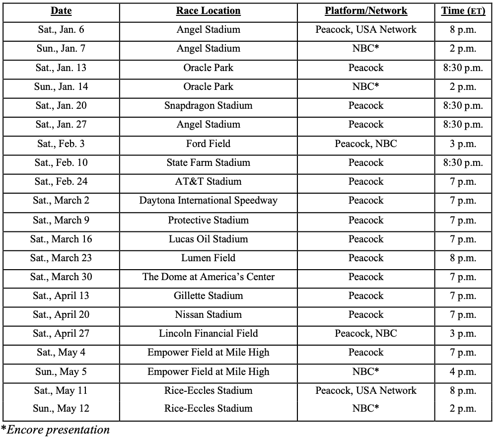 Peacock to Stream All Races, Qualifying and Heats Live Across Entire Series, Including 17 Exclusive Live Rounds