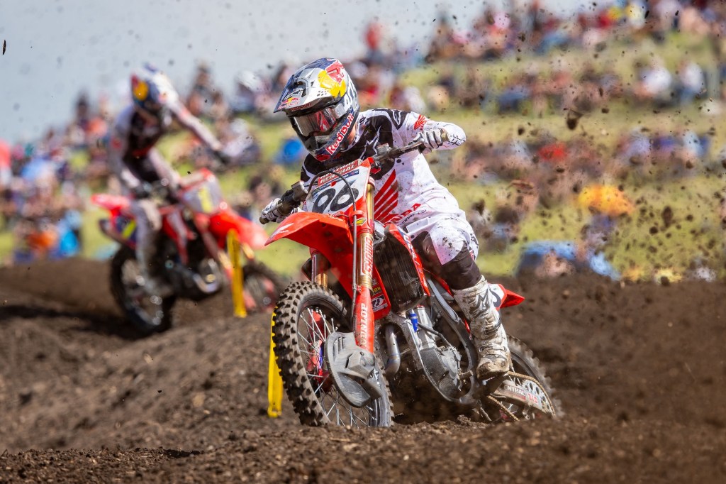 The Australian siblings started to increase their pace entering the final 10 minutes of the moto, which allowed them to chip away at the deficit to Cooper. The Yamaha rider responded and picked up his pace, which helped stabilize the lead, but the Honda duo didn’t relent. With five minutes to go, Hunter Lawrence initiated a battle for the lead, as Jett Lawrence lurked in third. Hunter acted on the first opportunity that presented itself and took advantage of some lapped riders to seize the lead with three minutes to go. Jett followed into second just a few turns later. For there the brothers quickly distanced themselves from the rest of the field, with Hunter asserting his hold on the top spot in the final stages.