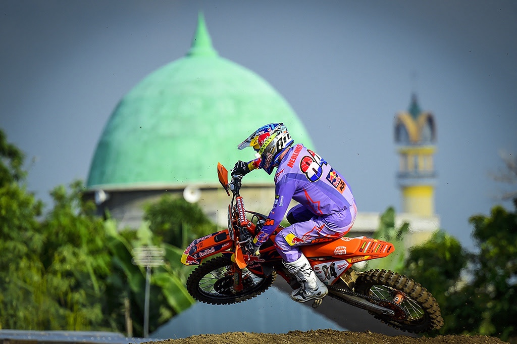 The Bullet” has shown a lot of speed in the two Indonesian rounds so far, showing no problems with the heat of the region despite not racing here since 2018. He topped the timesheets in both Free and Time Practice, with Tim Gajser and Fantic Factory Racing’s lone warrior Glenn Coldenhoff achieving the third fastest time.