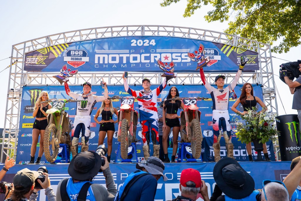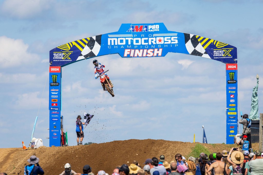 BUCHANAN, Mich. (July 6, 2024) – The 2024 Pro Motocross Championship, sanctioned by AMA Pro Racing, reached its halfway point with the annual Independence Day tradition from legendary RedBud MX for Round 6 of the summer campaign. The first race following the recent news that defending champion Jett Lawrence will miss the rest of the season with injury, the Bob The Cooler Co. RedBud National featured near-perfect weather conditions, where one of the biggest crowds in RedBud history was on hand to cheer on hometown racer Chase Sexton to victory. The Red Bull KTM Factory Racing rider swept the motos for his second win of the season, and the first at the track where he grew up racing, which also allowed him to take control of the 450 Class points lead. In the 250 Class, Team Honda HRC’s Chance Hymas kept his breakout season going with the first victory of his professional career.