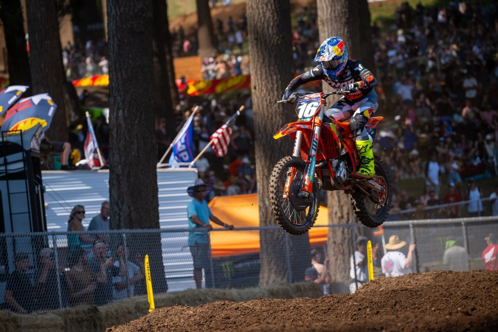 WASHOUGAL, Wash. (July 20, 2024) – The 2024 Pro Motocross Championship, sanctioned by AMA Pro Racing, made its final trip to the West Coast for Round 8 of the summer campaign, where the scenic surroundings of Washougal MX Park challenged riders under some of the hottest temperatures of the season. The MotoSport.com Washougal National Presented by Peterson CAT also served as the series’ Military Appreciation Race, which provided an enhanced atmosphere of passion and excitement around the action on the track, which saw Red Bull KTM Factory Racing’s Chase Sexton dominate with his third straight 1-1 effort to capture his fourth 450 Class victory of the season and add to his championship points lead. In the 250 Class, points leader Haiden Deegan edged out Red Bull KTM Factory Racing’s Tom Vialle via tiebreaker for the fifth win of the season for the Monster Energy Yamaha Star Racing rider.