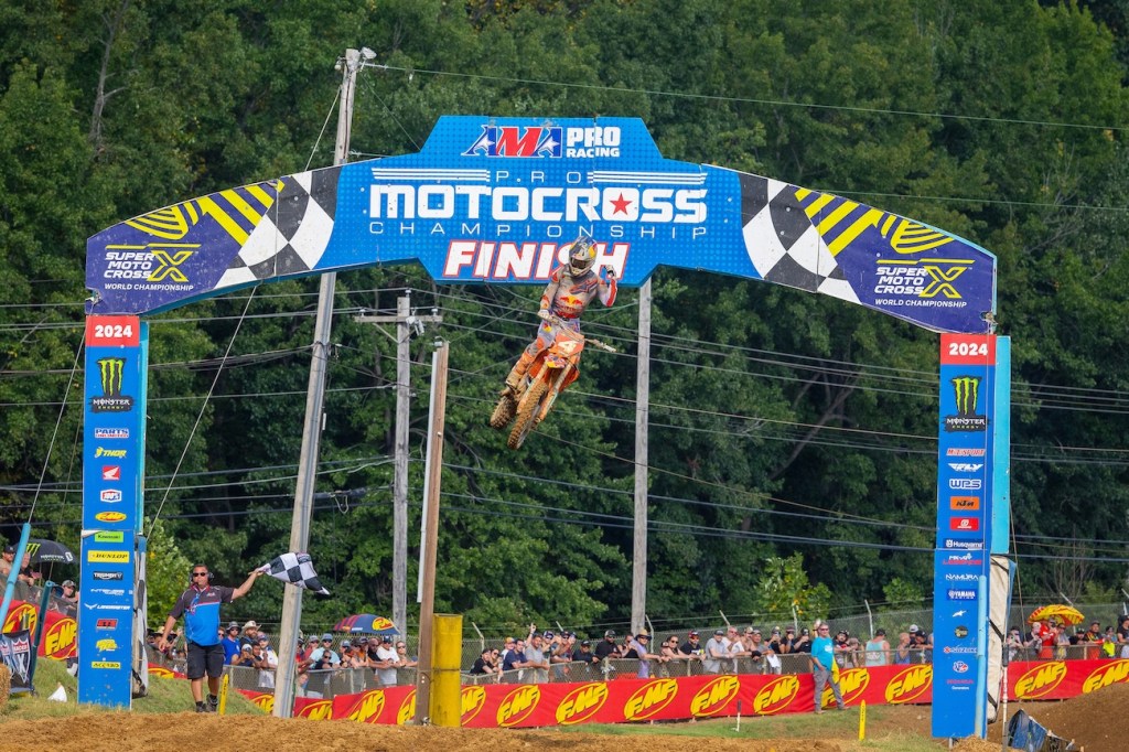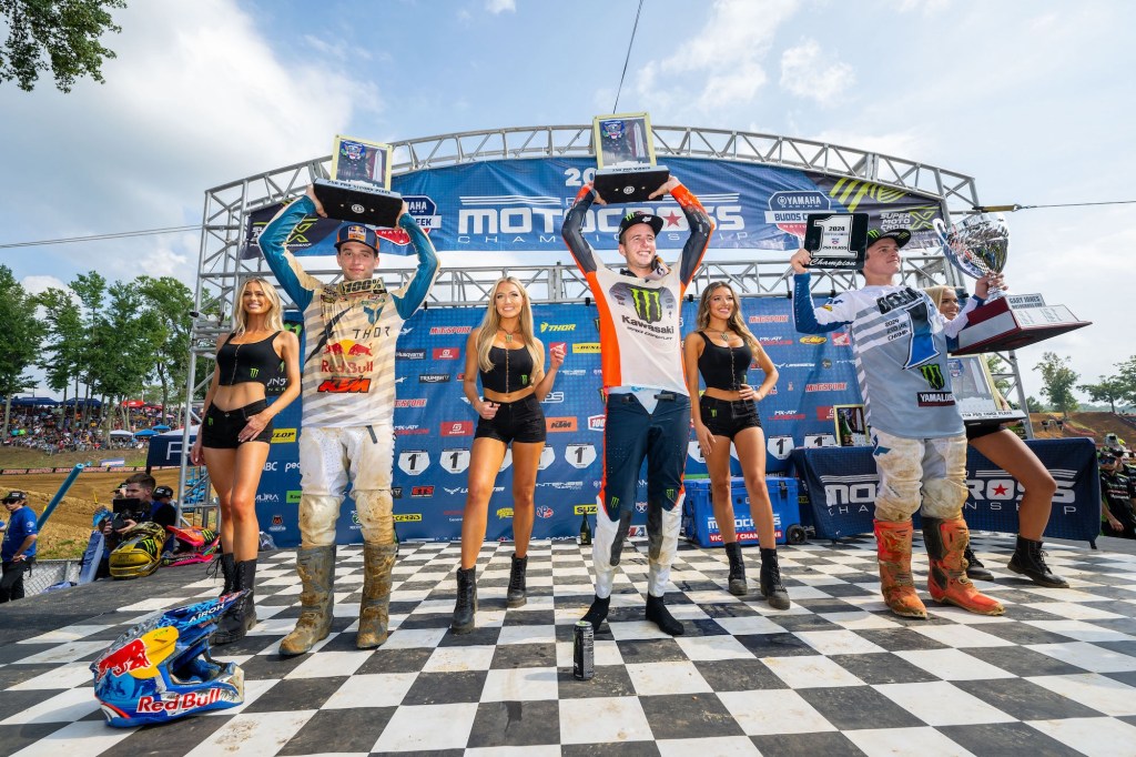 MECHANICSVILLE, Md. (August 17, 2024) – American motocross’ newest champion was crowned at the penultimate round of the 2024 Pro Motocross Championship, sanctioned by AMA Pro Racing, as Monster Energy Yamaha Star Racing’s Haiden Deegan captured the 250 Class title and the coveted Gary Jones Cup at the Yamaha Budds Creek National Presented by Call 855 Treeman. A morning of rain gave way to partly sunny skies with high temperatures and high humidity for a challenging afternoon at Southern Maryland’s Budds Creek Motocross Park, where the 10th round of the summer saw Red Bull KTM Factory Racing rider and points leader Chase Sexton secure his fifth straight 450 Class victory to move one step closer to the Edison Dye Cup, while Monster Energy Pro Circuit Kawasaki’s Levi Kitchen grabbed his third 250 Class win of the season amidst Deegan’s title clinch.