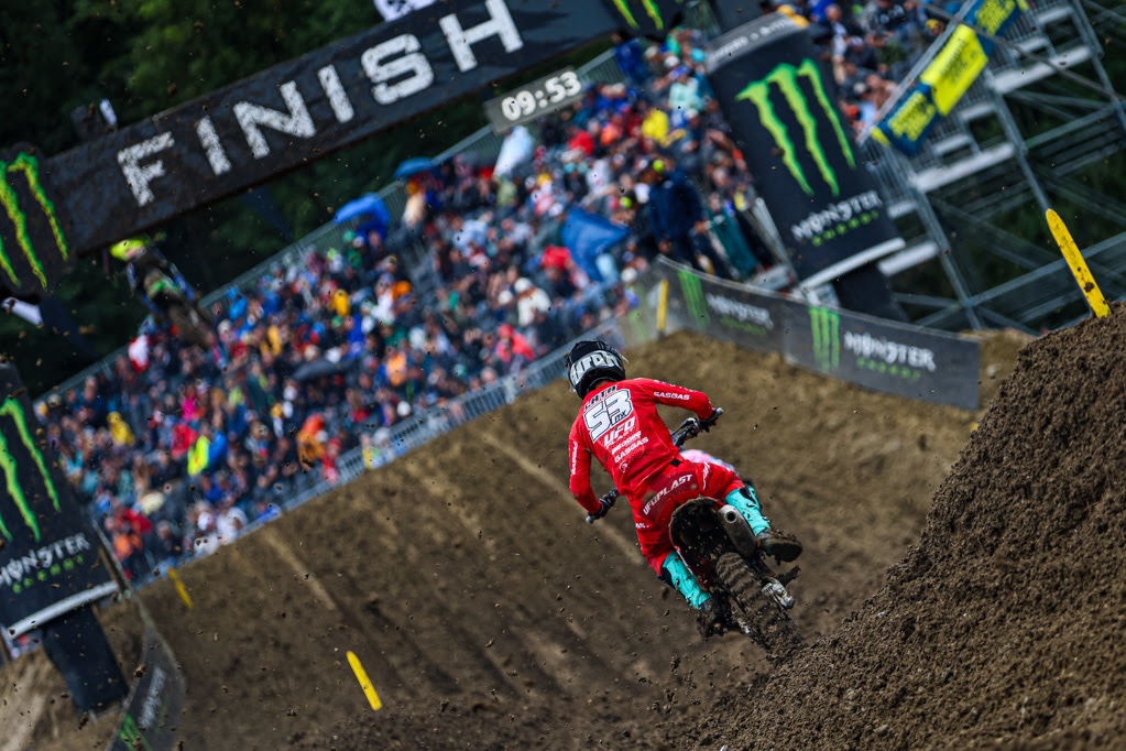 With the conditions extra wet from the overnight rainfall, Race 2 was going to be tough and technical in the the muddy conditions making a good start crucial. Alvisi, understood this perfectly, taking the holeshot and leading from the very beginning. Alvisi was followed closely by Ernecker, while Dani Heitink initially held third place before a fall on the opening lap pushed him back. Heitink showed remarkable resilience, fighting his way back through the field from 37th to finish just outside the top 10 in 11th place.