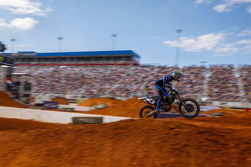 Monster Energy Yamaha Star Racing’s Eli Tomac dominated the first 450SMX moto on the high-speed, hybrid SuperMotocross track. He led most of the second moto but finished in the runner-up spot after a fierce battle with Lawrence. SuperMotocross event results are determined by a combined two-moto score, so Tomac earned second overall with (1-2) moto finishes. The freshly-crowned AMA Pro Motocross champion, Red Bull KTM Factory Racing’s Chase Sexton, was in the mix in both 20-minute plus one lap motos. Sexton had to settle for a third overall when the two leaders pulled away from him late in the final moto. In the 250SMX Class, Monster Energy Yamaha Star Racing’s Haiden Deegan delivered two impressive moto charges after mid-pack starts in both motos; Deegan took both 250SMX moto wins in convincing fashion to earn the 250SMX overall win.