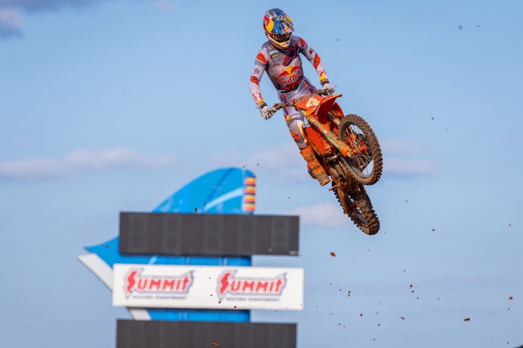 « I surprised myself more than you guys, I think. That race pace [was] a little different than practice. But that’s so cool. I remember back in 2023 I was saying I really wanted to battle Eli in outdoors, and this is as close as we get to outdoors, so it was a really cool thing to do. I could say a goal checked off, or a little check off the bucket list, you could say. I’m just super pumped to be up here again, and yeah, I’m back! » – Jett Lawrence, from the podium after his second moto win.