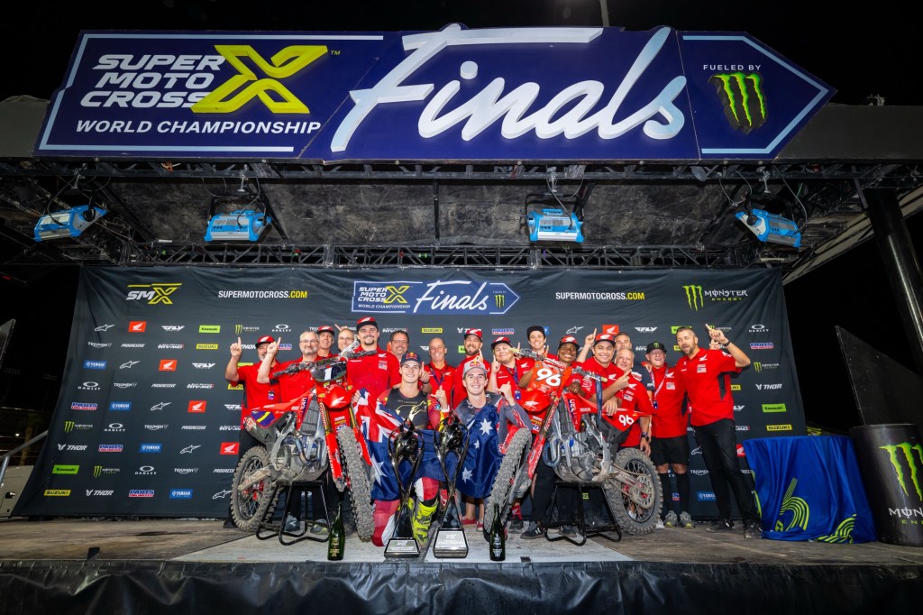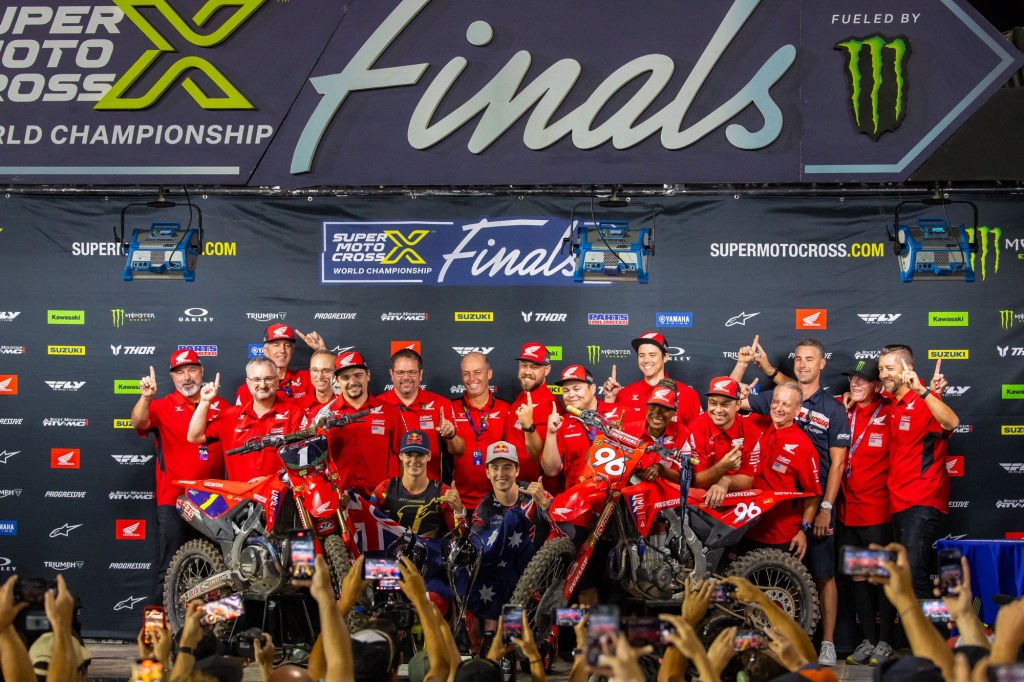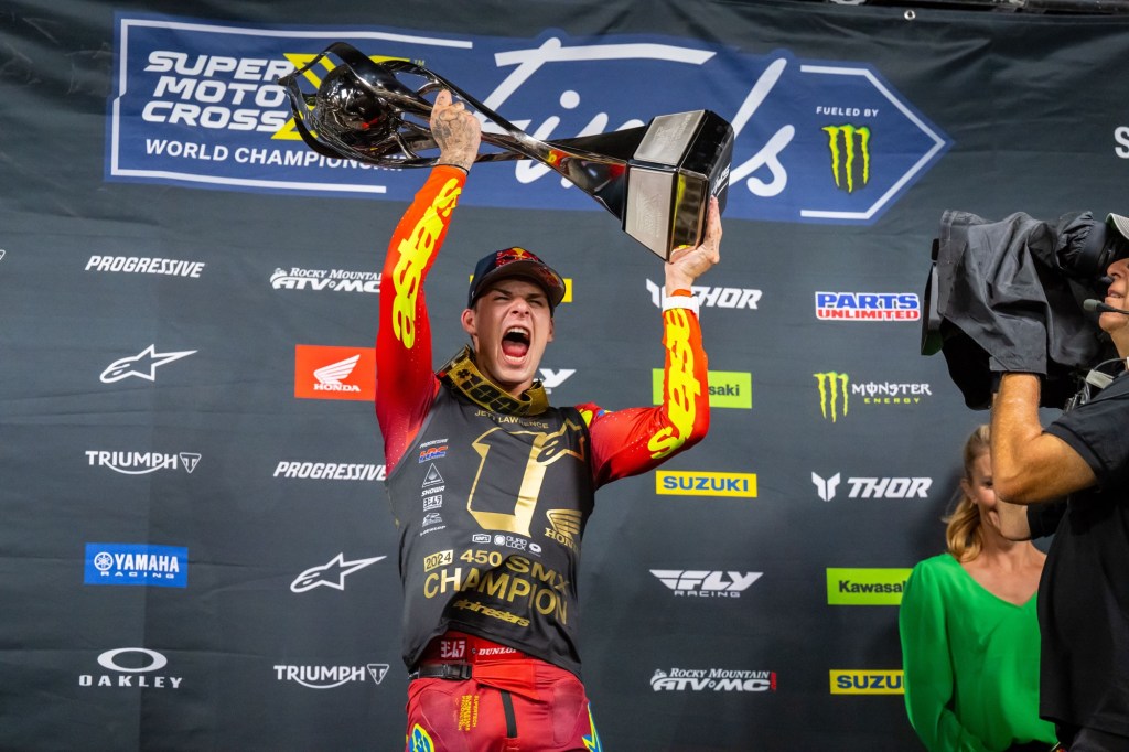 Las Vegas, Nev., (September 22, 2024) The 2024 SuperMotocross World Championship came down to one final moto where two brothers, also teammates, battled for the sport’s premier championship and the one million dollar payday that comes with it. Team Honda HRC Progressive’s Jett Lawrence emerged with the championship crown for the second year after winning the inaugural title last year; the new series encapsulates the 17-round Monster Energy AMA Supercross indoor season, the 11-round AMA Pro Motocross outdoor season, as well as the two postseason Playoffs and World Championship with escalating points payouts.