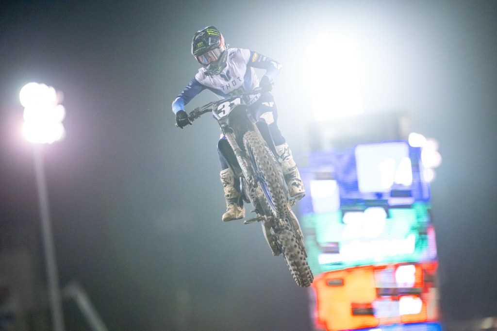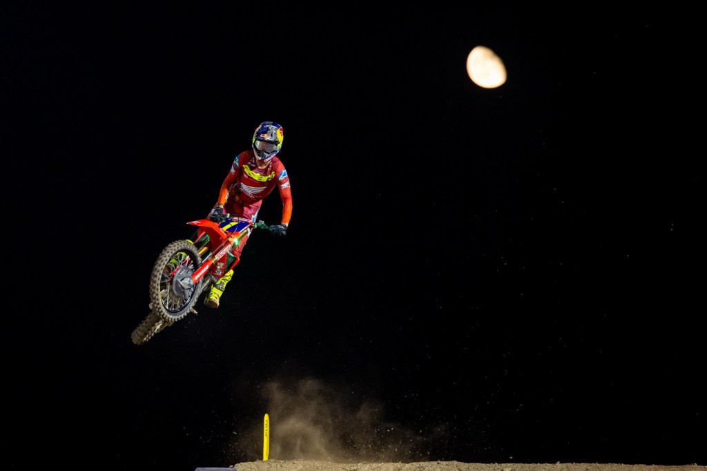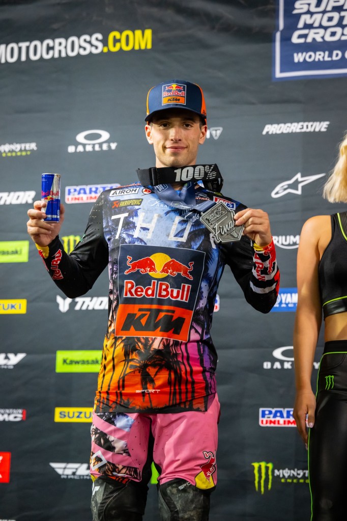 “I gave it my best. I just started behind them there, and did what I could, but we were all really fast tonight. They maybe had a couple little sections at the beginning [where] they were kind of sneaking away from me. So overall, [it was a] pretty good SMX series here [for me], and glad I was fighting towards the front of the races for this comeback. And just thank you to the team, all the fans, everyone… it’s good to be back.” – Eli Tomac