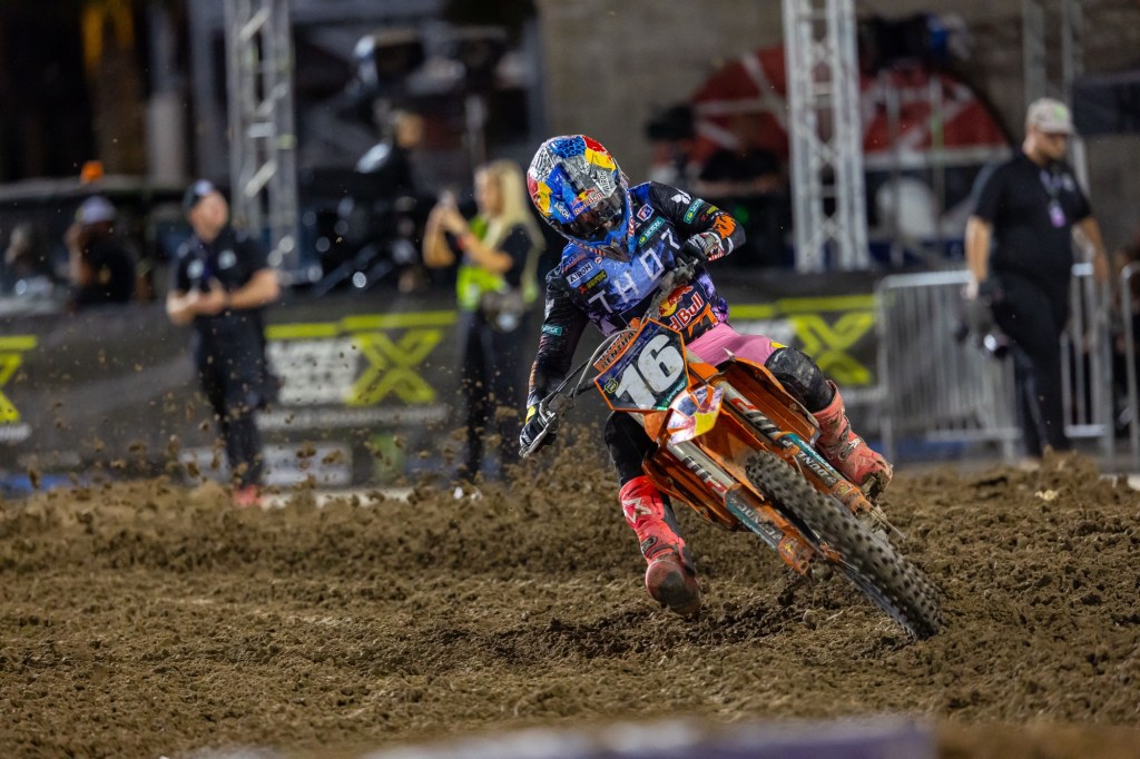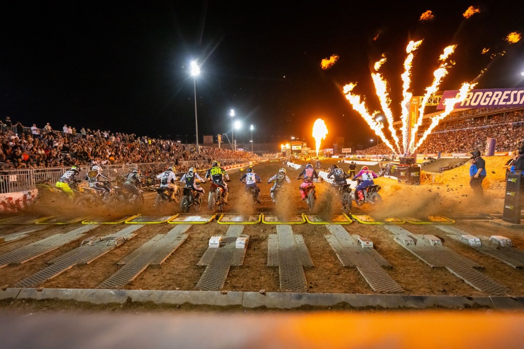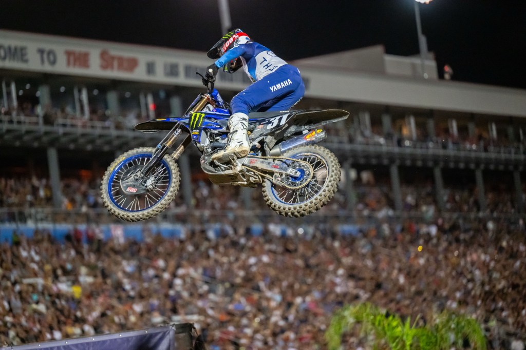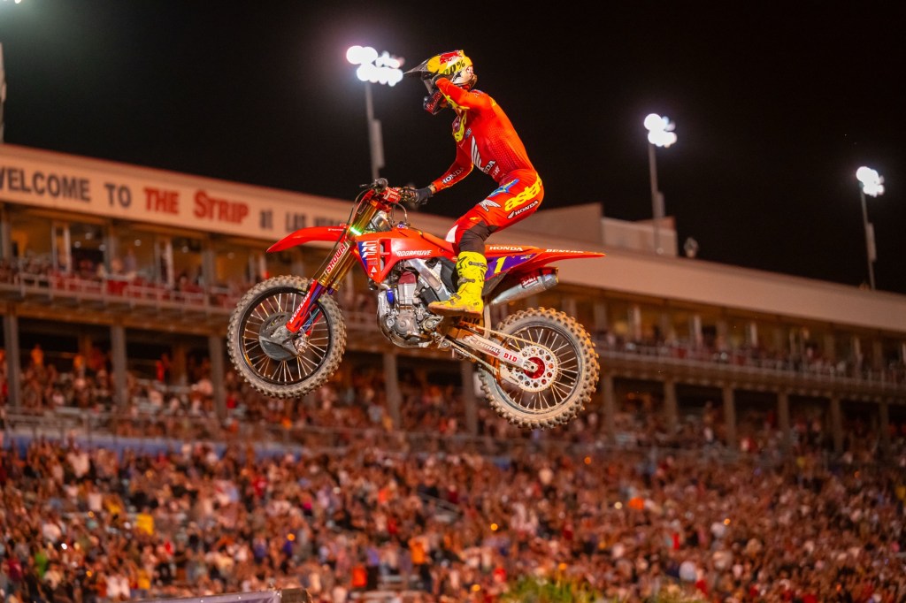 Team Honda HRC Progressive’s Hunter Lawrence challenged his younger brother right to the final checkered flag of 2024. Hunter earned the runner-up position in the championship and a $500,000 check via (3-2) moto finishes; the race format determines the event’s overall results with Olympic-scoring of two 20-minute plus one lap motos. Monster Energy Yamaha Star Racing’s Eli Tomac earned third place at the Las Vegas event, as well as the cool $250,000 championship payout that comes with it. Tomac put together strong (2-3) rides on the hybrid Supercross-motocross track at The Strip at Las Vegas Motor Speedway. Red Bull KTM Factory Racing’s Chase Sexton, along with the Lawrence brothers, entered the Las Vegas World Championship with enough points that a win would earn him the title. Unfortunately, Sexton’s night ended on the first lap of the first moto when he tangled with another athlete and pulled out of the racing.