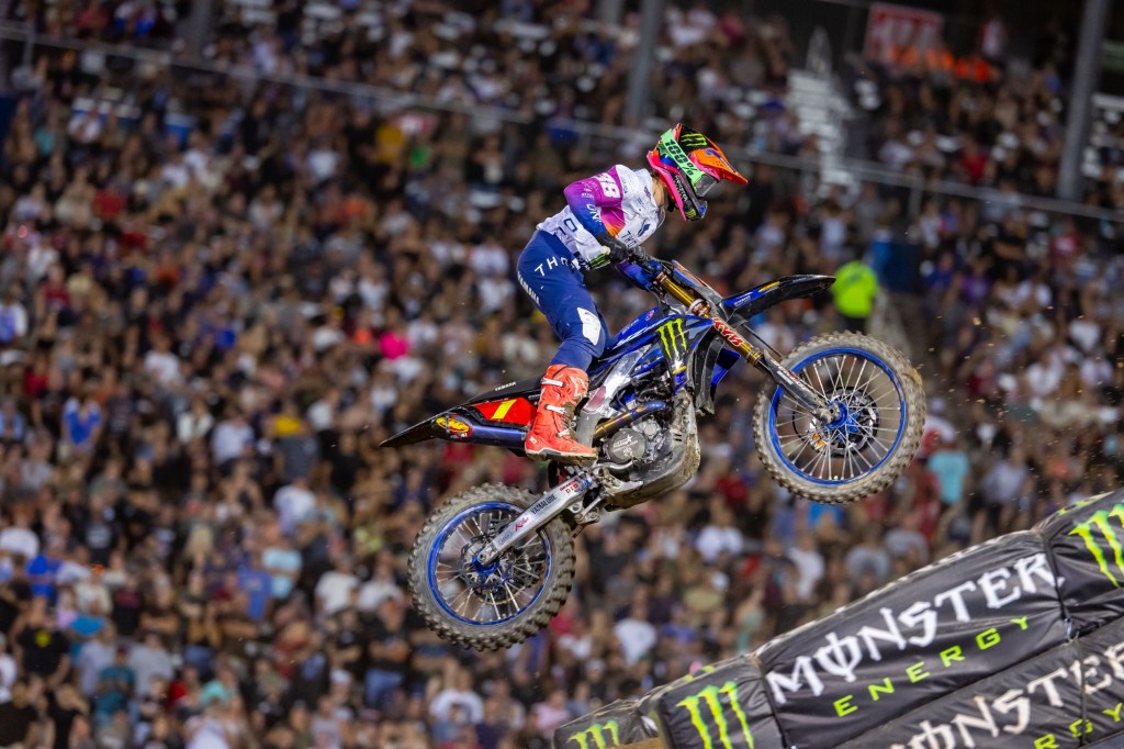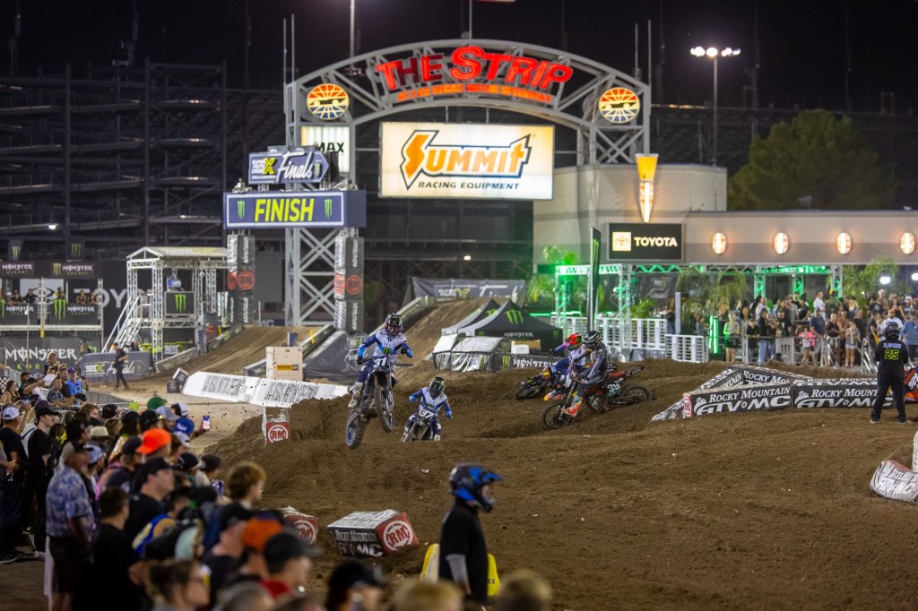 In the 250SMX class, surprise winner Pierce Brown jumped quickly into second place in the opening moto, then followed that up with a strong moto 2 ride that saw him take the lead just before the midpoint. Brown’s overall event win catapulted him from seventh into third in the final championship standings. Haiden Deegan entered the event with a 19-point lead, but with a triple point payout he still needed to earn at least third overall to guarantee the title. Deegan won the first moto and charged up to second in the final moto to grab the championship with a total of five post-season moto wins. Monster Energy Yamaha Star Racing’s Jordon Smith earned third place on the night with (5-3) moto scores. Red Bull KTM Factory Racing’s Tom Vialle started the night’s racing in second place in points, but a disappointing final moto ended his title hopes. His (3-8) moto finishes were enough to land him second in the championship.