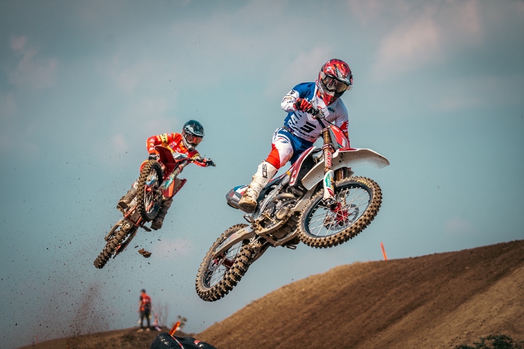 As with Saturday’s Qualification Race, the battle came down to a clash between Italian Francesco Bellei and French #1 plate holder Alexis Fueri. The French spearhead took the Holeshot but with a determined move, Bellei was able to take the lead on lap two and never looked back, except maybe to check on how his teammate Nicolo Alvisi was doing! The answer was very well, backing up Bellei with a great third place to instantly give Italy an early advantage. Team Slovenia were in the mix with their Monster Energy FIM Motocross of Nations MX2 rider Jaka Peklaj taking fourth and their 125cc rider Lukas Osek claiming seventh.