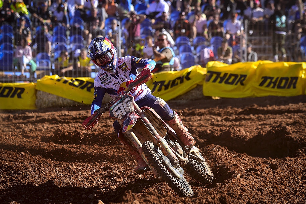 Looking to tie up his second straight MXGP world title this weekend, his first to be decided at the final round and in his home country, Red Bull GASGAS Factory Racing star Jorge Prado kept all of his fans happy with a trademark holeshot to chequered flag win, giving him just a tiny bit more breathing room for tomorrow’s races over his Championship challenger Tim Gajser, who was third for Team HRC.