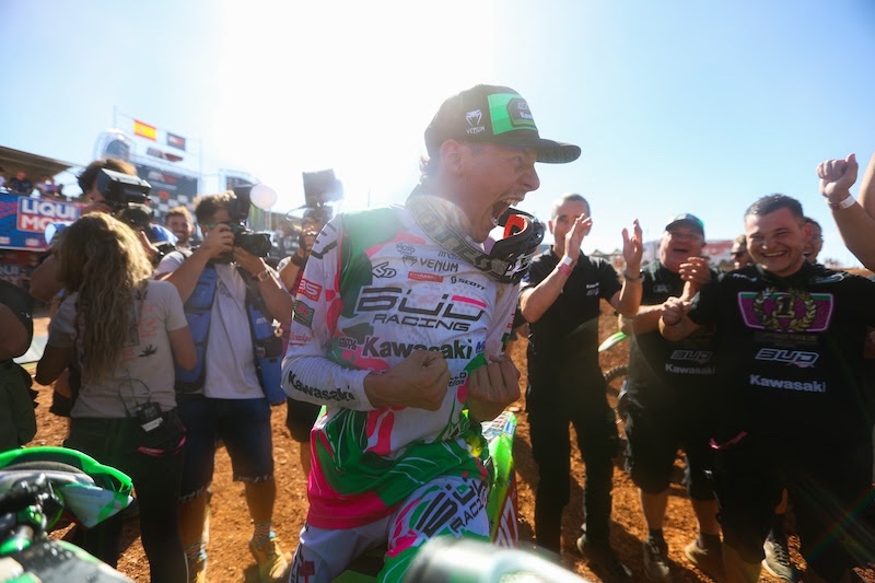 Valin who displayed incredible control and speed to put the cherry on the cake of the celebration with another strong win in front of his teammate Garib for a Bud Racing Kawasaki 1-2, that handed him the EMX250 crown in the best possible way!