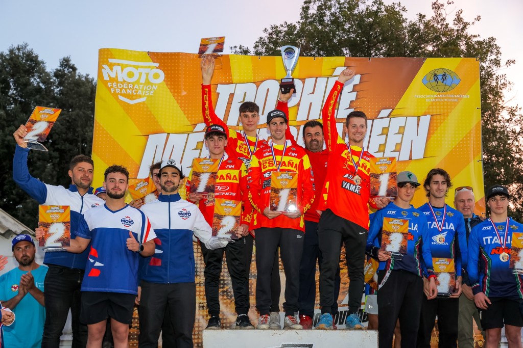 Sur le superbe tracé de Pernes-les-Fontaines (84), et sous un soleil radieux, la France a bataillé deux manches sans pouvoir empêcher les Espagnols de remporter le Trophée Méditerranéen pour la deuxième année consécutive. Emmenés par un Christophe Charlier performant, et en présence de Sébastien Poirier, Président de la Fédération Française de Motocyclisme, ils signent le même résultat que l’an dernier tout en s’imposant en catégorie MX1.