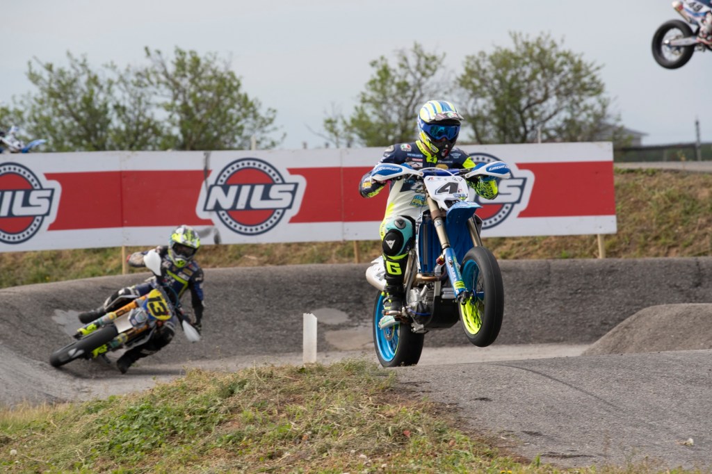 The SM Junior featured a breathtaking battle among the top three riders of the standings. Matej Kokes (Husqvarna) was chased by Nathan Terraneo (KTM) and Andrea Benvenuti (KTM), but the Czech rider did not manage to stretch away and leave rivals behind. Andrea Benvenuti prevailed over Terraneo and went after the race leader, trying to overtake him multiple times. Kokes slipped at the beginning of the final lap and handed the victory straight to Benvenuti, who finished in front of Terraneo.