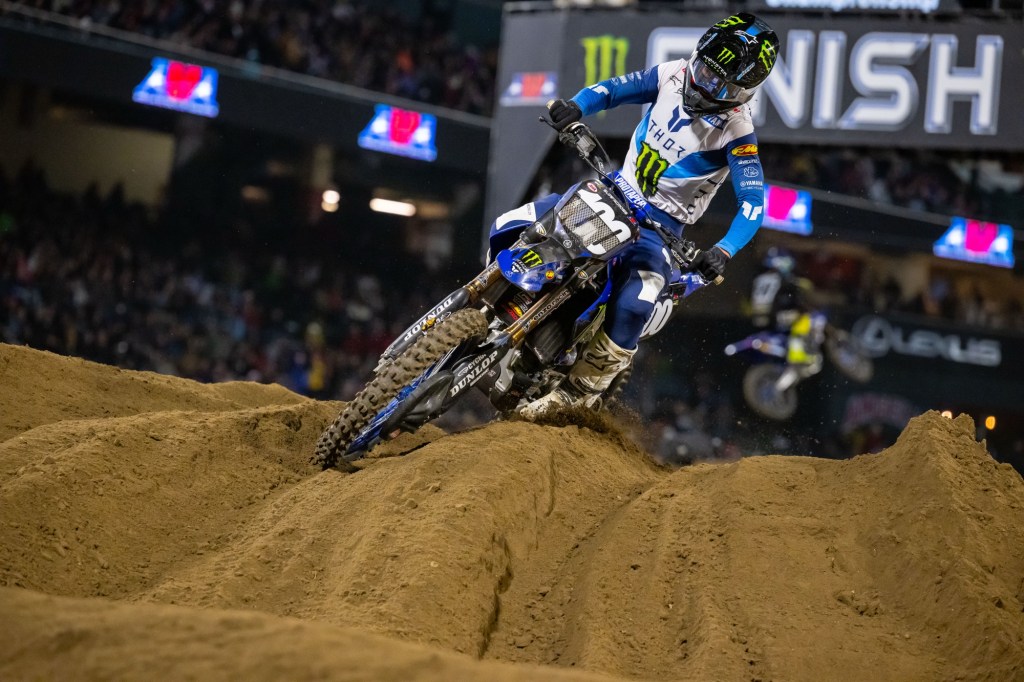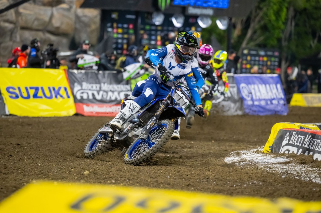 “It’s an absolute dream. After I was in position last week for a possible third, I came back [to the truck and] was thinking it would be so rad to share a red plate with Eli. And just to have a red plate, it’s been a long time, especially on a Suzuki. I wasn’t able to make [a win] happen tonight. This was an absolutely insane race. We were in a battle the whole way, and it was awesome. With the rain and how hardpacked the dirt was, it was very slippery out there, but I just kept my focus the whole way… After making a [first] pass stick on Jason I hit neutral, and he got me back. I was bummed because it’s a lot of work to get by.” – Ken Roczen, regarding a comment that he moved into the points lead for the first time since the opening round of 2022.