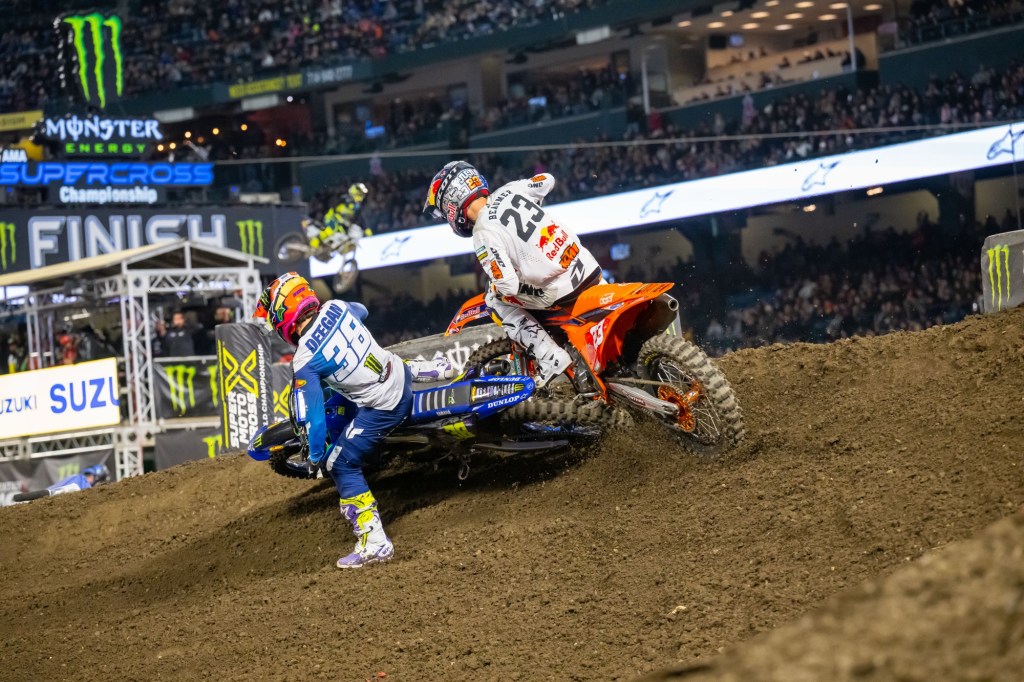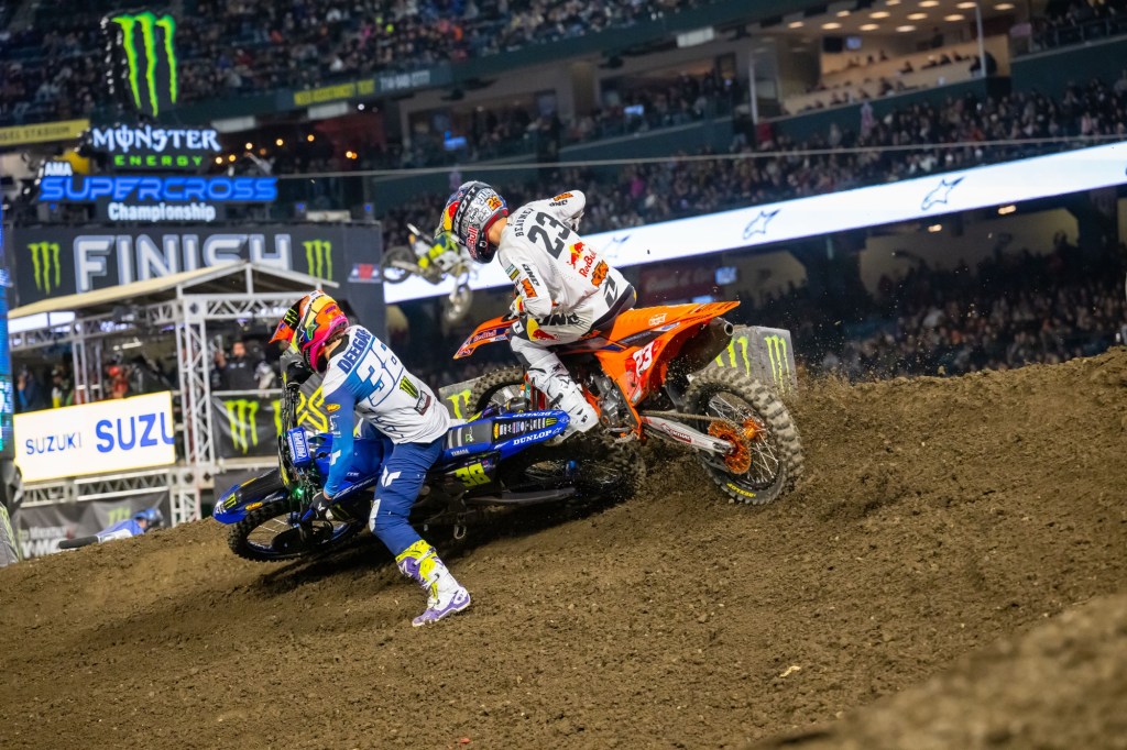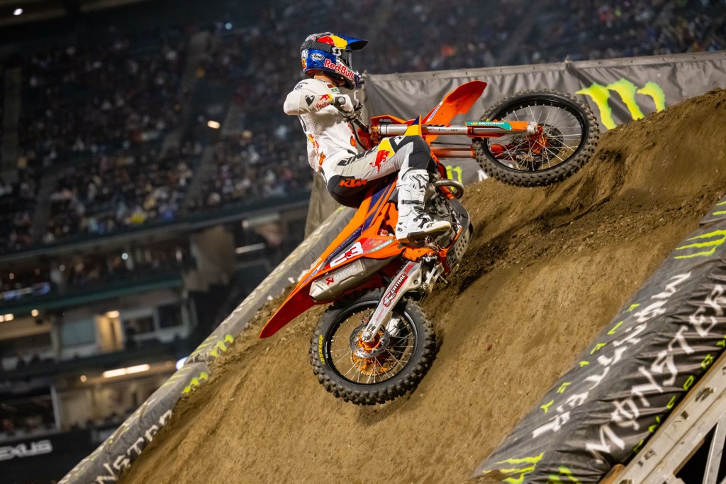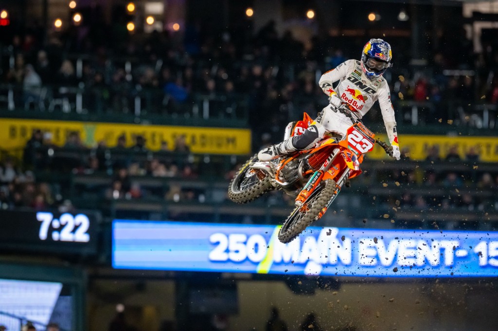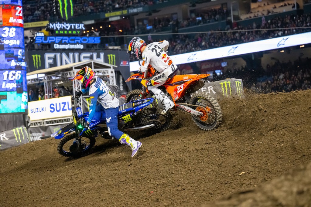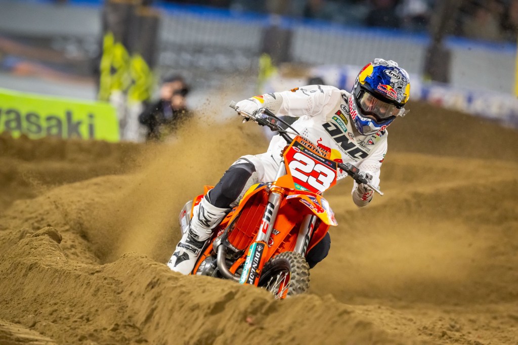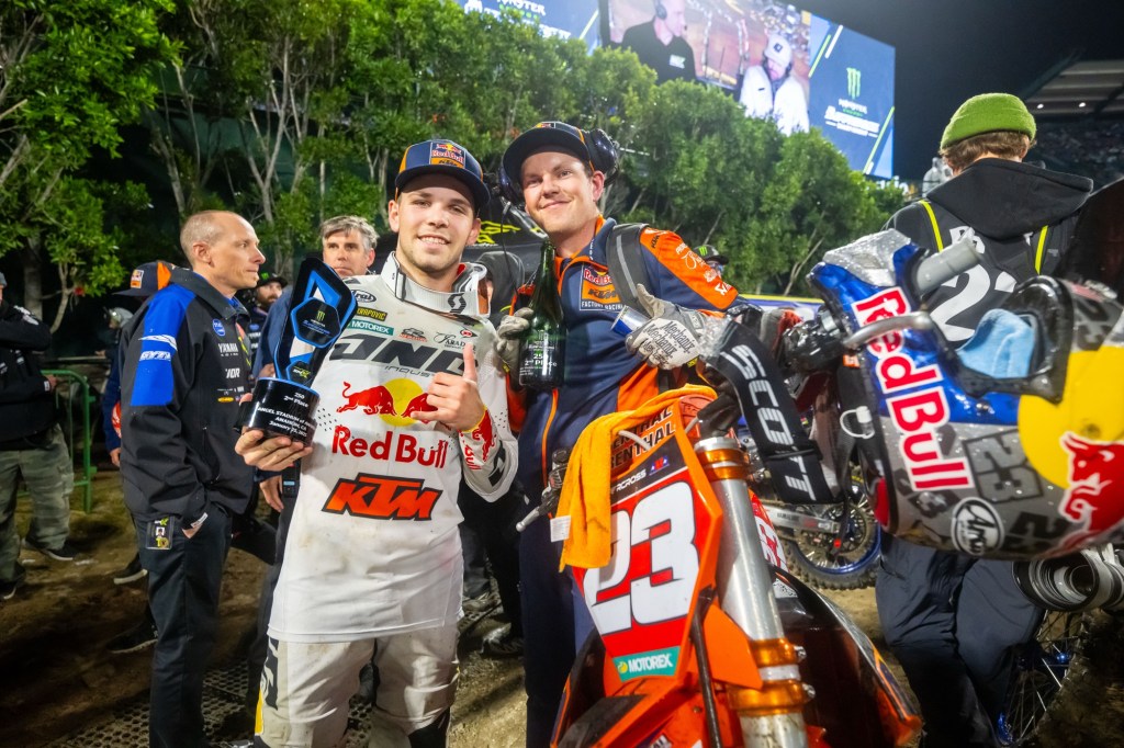 “[Haiden and I] got together in that heat race and I went down. Nothing too big, nothing to worry about… [In the main] I got off to a good start and he rode great, hats off to him, he was the better man tonight. Now we’re going to get back to work. I can’t thank everyone enough; Red Bull KTM, they’ve been working their butts off.” – Julien Beaumer, when Deegan’s words about him were pointed out to him.