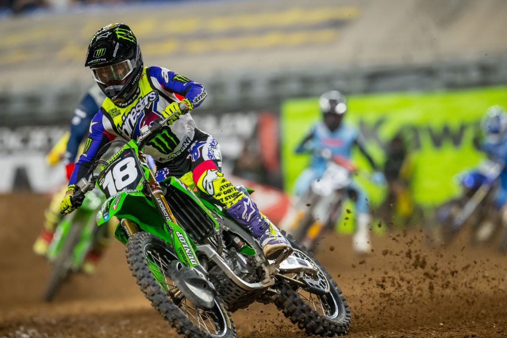 The Glendale Supercross kicked off the SMX Next season, which gives the sport’s superstars of tomorrow an opportunity to compete on a professional Supercross track in front of a stadium of enthusiastic fans. Kawasaki Team Green’s Landen Gordon came out on top after an incredible battle that saw three lead changes in one lap. Kawasaki Team Green’s Enzo Temmerman battled into the runner up spot late in the race that was interrupted by a red flag. EBR Altus Yamaha’s Landon Hartz was a threat for the win but had to settle for a third-place finish at the checkered.