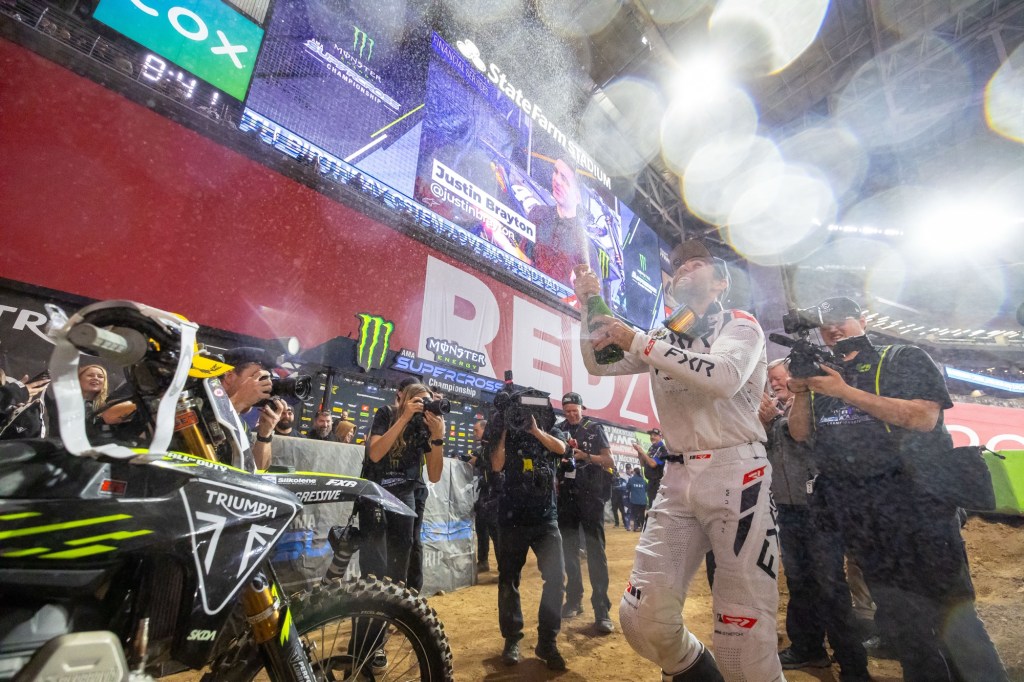 « What an incredible night. Tonight Jordon and the team made history in the sport for Triumph! We’ve accomplished a lot in the short time we’ve been competing with the TF 250-X in SuperMotocross; from building a world class facility, putting together a race team, to developing bikes in a new segment for our company that can compete with the best at the highest level of Supercross competition. Tonight saw everything that we have been working towards come together and I know that everyone in the factory is going to be immensely proud of this achievement. We’d like to say a big thanks to our partners and everyone that’s been involved with this project; let’s enjoy this moment to celebrate this huge success. »