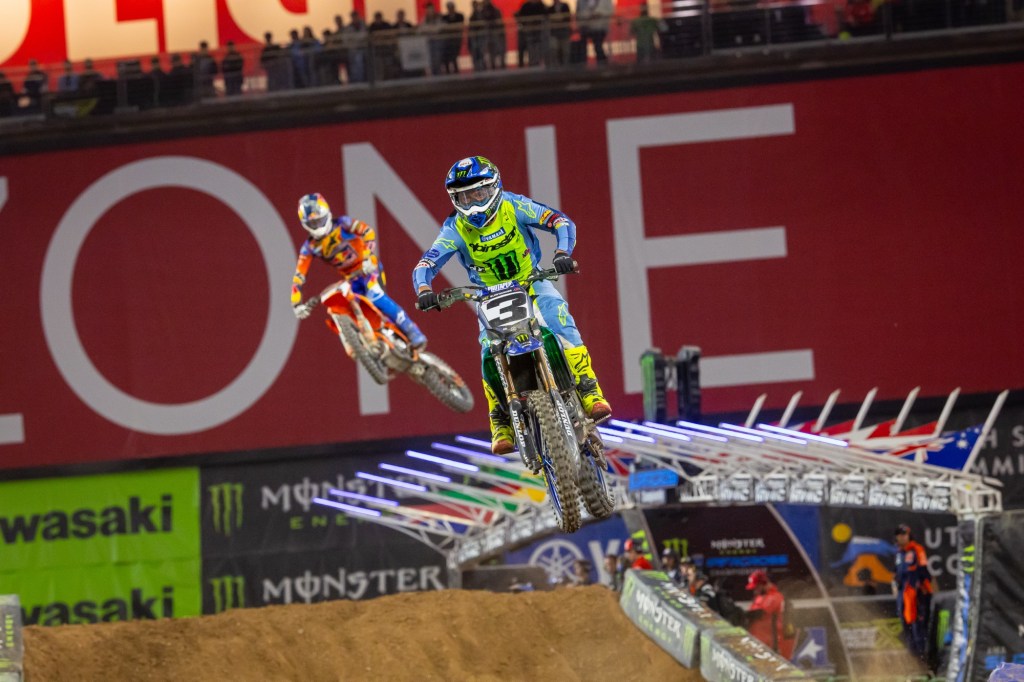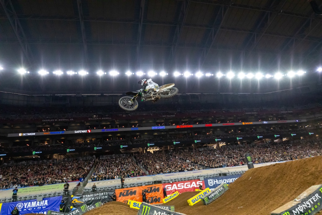 “It’s been a rough go here in this stadium… I’ve heard it all week how I suck here, so everyone can shut up now… Honestly, I had a lot of fun today. I turned the page. It was so close – one point from a win and I won a [Race], so I’m stoked with the night. We’ll keep the ball rolling as we head east. Those are my conditions that we’re headed to now, and I’m super stoked with everything.” – Cooper Webb, in reference to doubters and his sub-par past finishes at the Glendale round.