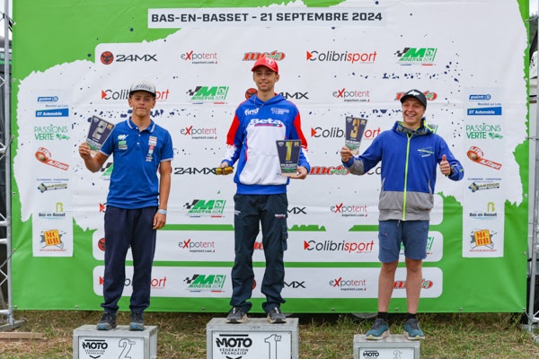 Completing his double win in Moto Junior 1, series leader Matheo Gerat – Yamaha finished twenty-one seconds in front of Maxime Miet – KTM with both riders one lap ahead of Moto Junior 1 Women class winner Ema Satabin – GASGAS.