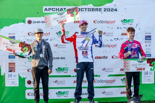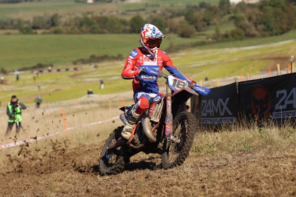 Il est un pilote qui aura marqué de son empreinte l’Enduro Kid ces dernières années. Champion Minime 2021, champion Cadet 85 2022 et Champion Cadet 125 en 2023, Emerick Vergote a completé son tableau de chasse ce samedi en devenant le nouveau champion de France Enduro Kid Espoir. Alors qu’il aurait pu se permettre d’assurer, il a pris tout de suite les commandes de la course pour ne plus les lâcher. Au terme des huit chronos de la journée, il avait accumulé plus d’une minute d’avance sur l’espagnol Hugo Cuesta, second. Une victoire éclatante à l’image de sa saison qui frôle la perfection. Paul Garcia, qui a terminé la journée aux portes du podium, parvient à conserver sa seconde place au général, il est vice-champion. Gaël Chassaing termine lui aussi sur une bonne note avec un nouveau podium, il a prit la troisième place.