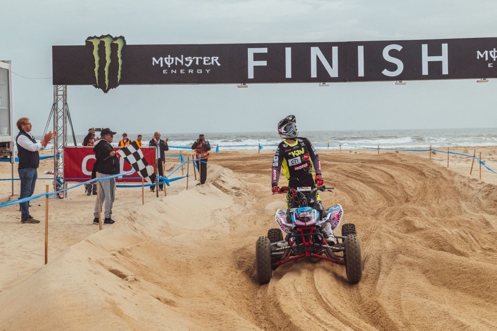 Kellett secured the title last year in Portugal’s famous Algarve sand and he was delighted to make sure of a repeat performance today after his conclusive win on Saturday. Already leading Valentin Madoulaud – Yamahaby over five seconds following the opening lap, the twenty-seven-year-old British star quickly asserted full control of the hour-long race.