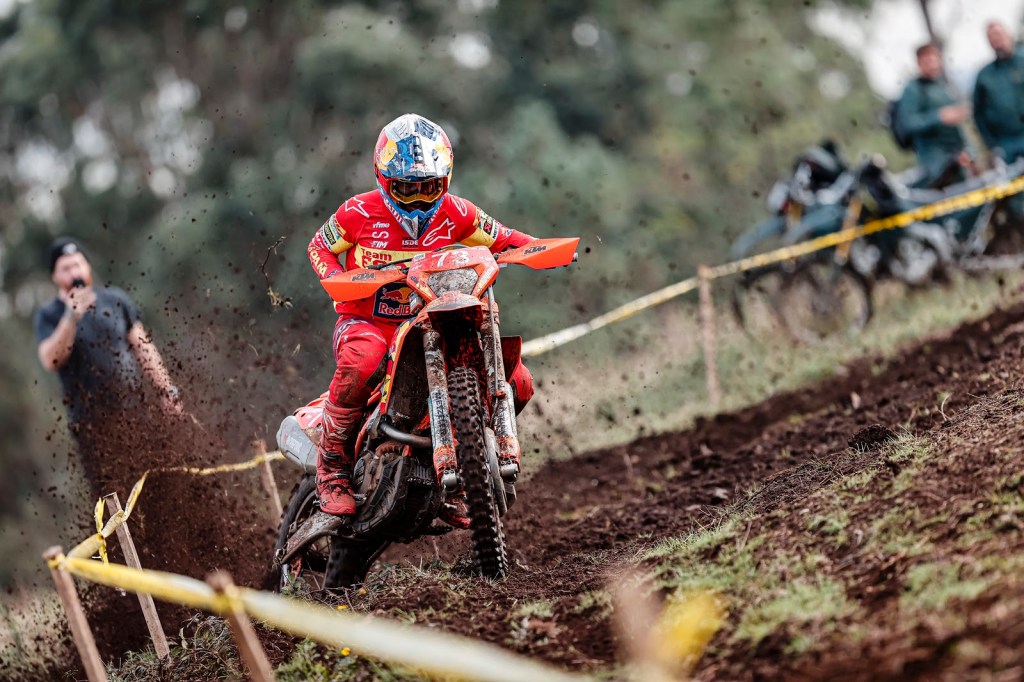 Keeping that momentum rolling, he won the opening two special tests this morning and had built up an 18-second lead as they reached the final MAXXIS Enduro Test. However, mistakes almost saw all his hard work come undone. Regrouping after getting stuck in a mud hole, he took the win by two seconds over Team KTM Pro Racing Sport’s Max Ahlin. Team Beta Oxmoto’s Leo Joyon completed the top three.