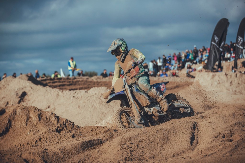 The iconic course on the coast of northern France had been extended by two kilometres to fifteen kilometres to mark the event’s fiftieth anniversary and the British Lion took the extra distance in his stride. His biggest challenge was expected to come from his team-mate and three-time Enduropale du Touquet Pas-de-Calais winner Milko Potisek, but the thirty-five-year-old Frenchman found himself over ten seconds behind after surviving the chaos of the opening lap as his compatriot Matheo Miot – Yamaha provided the early opposition to Kellett.